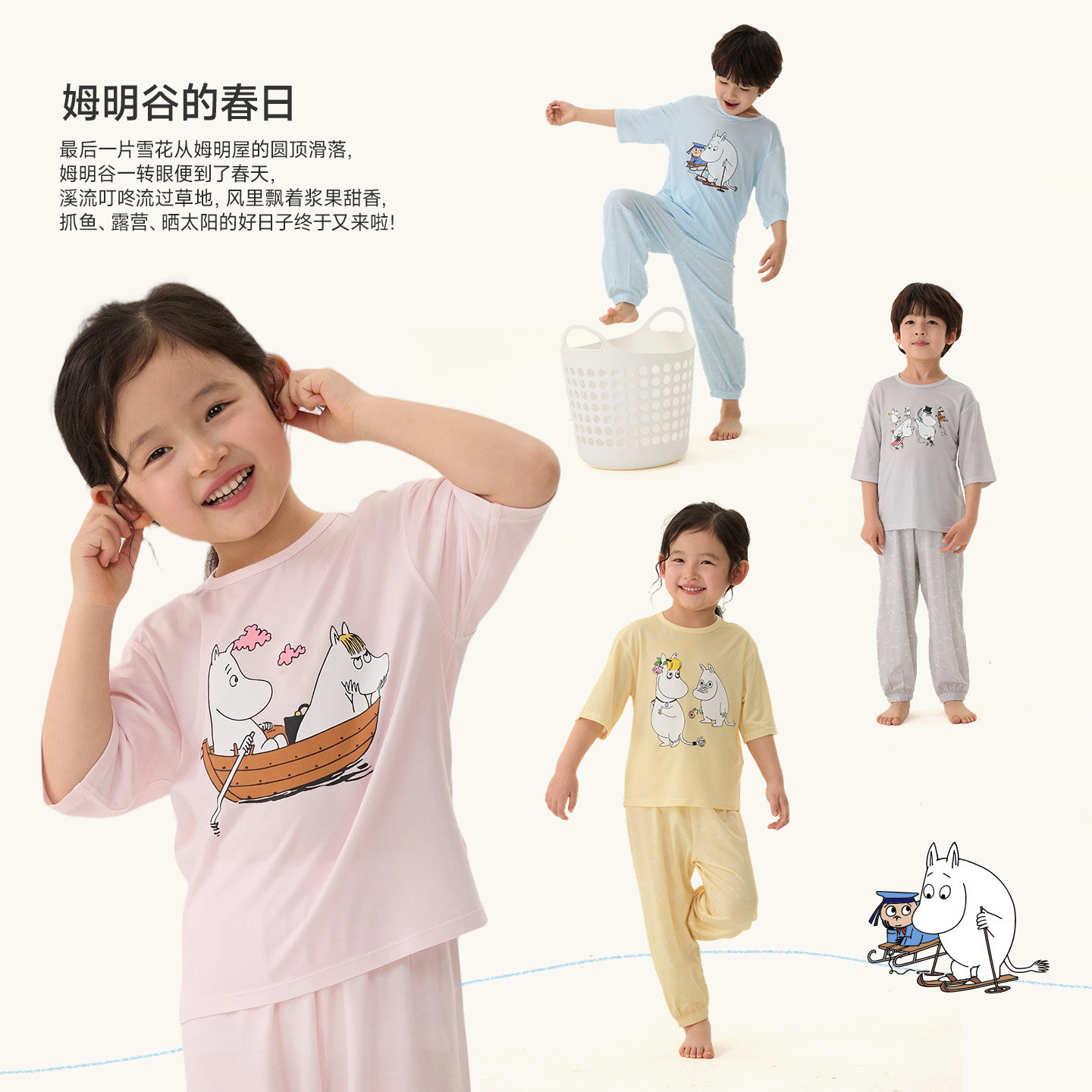 Q21x姆明联名儿童家居服天丝莫代尔亲肤柔软低敏抑菌印花睡衣套装