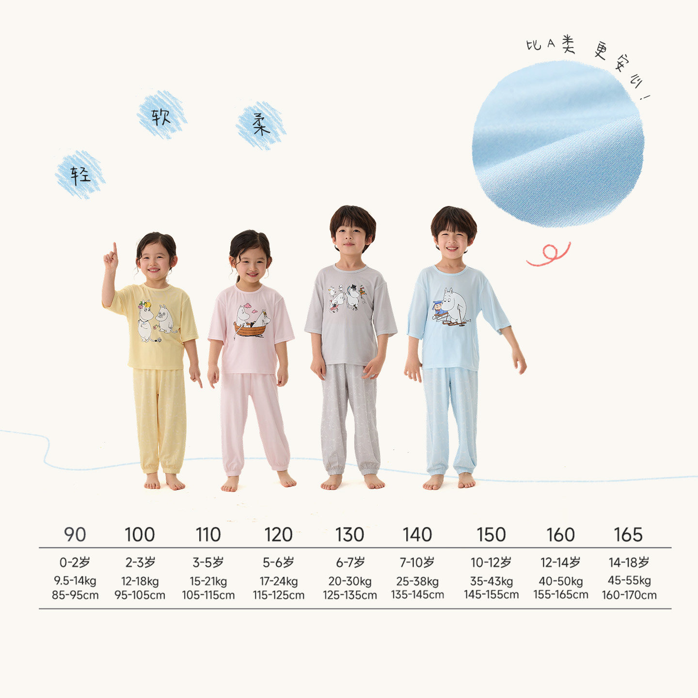 为您提供商品Q21x姆明联名儿童家居服天丝莫代尔亲肤柔软低敏抑菌印花睡衣套装的详细介绍,