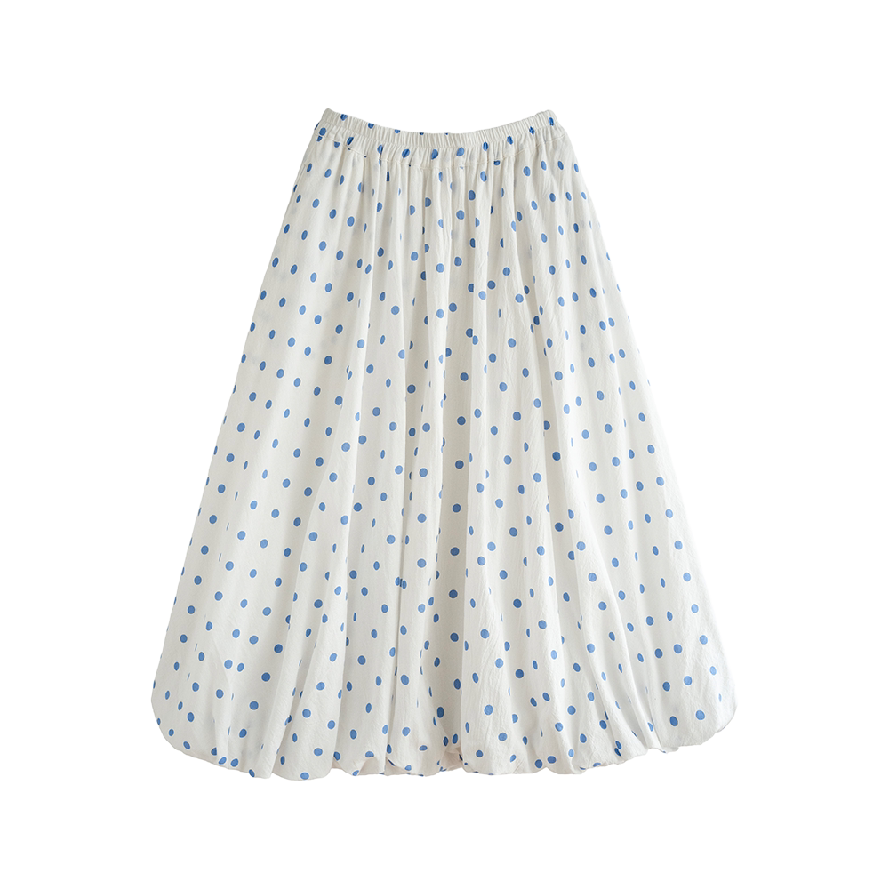 为您提供商品100棉柔软不易皱 显瘦森系清迈松弛裙子 日系蓝波点花苞半裙 古苔的详细介绍,