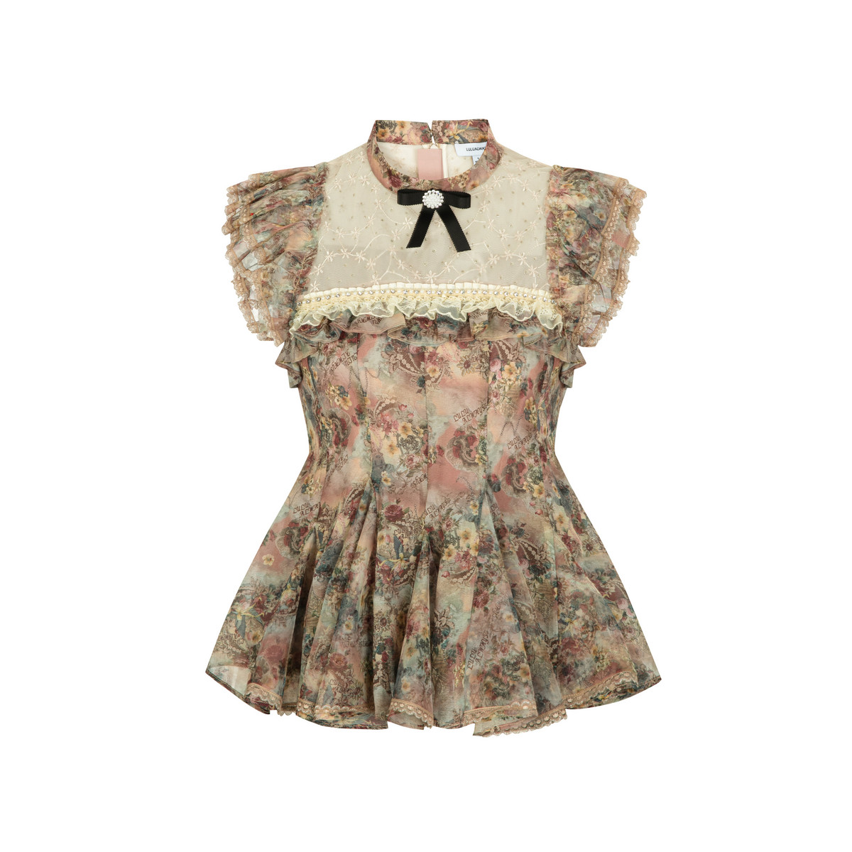 复古油画风飞飞袖 荷叶边碎花上衣 新款 LULUALWAYS我爱露露26夏季