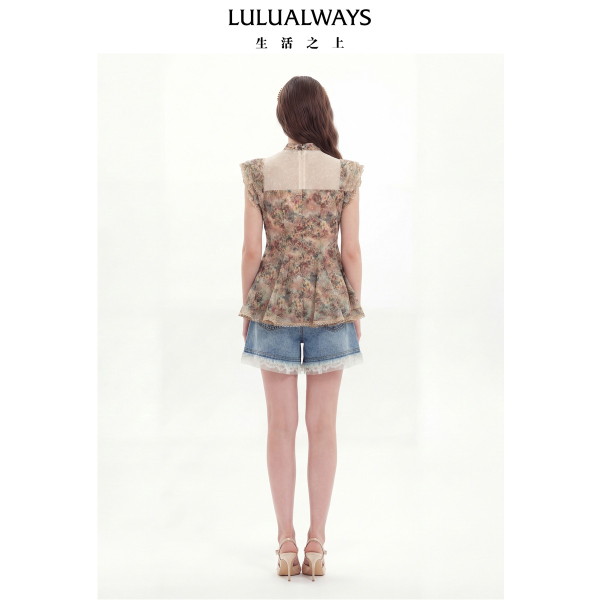 复古油画风飞飞袖 荷叶边碎花上衣 新款 LULUALWAYS我爱露露26夏季由