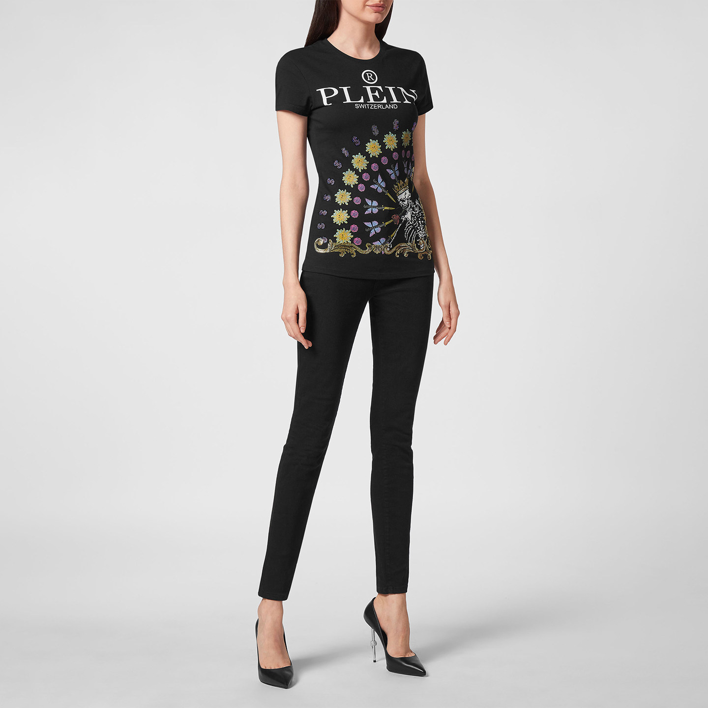 刺青骷髅图案T恤修身 PHILIPP PLEIN 女士春夏季 上衣 短袖