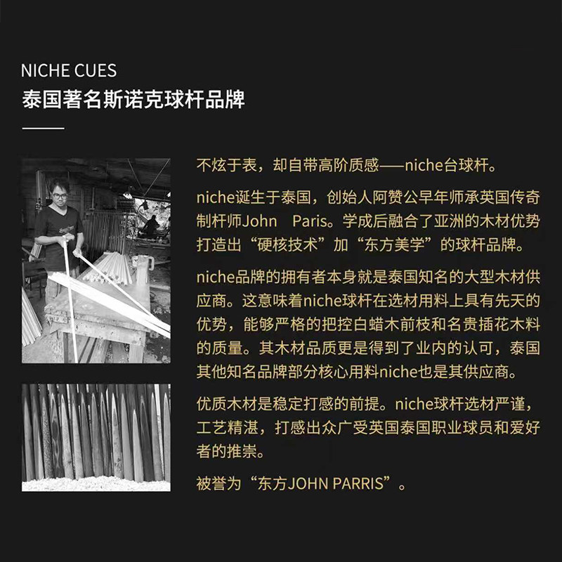为您提供商品泰国Niche台球杆塔猜亚桑塔姆同款 黑八斯诺克小头杆 手工球杆中式的详细介绍,