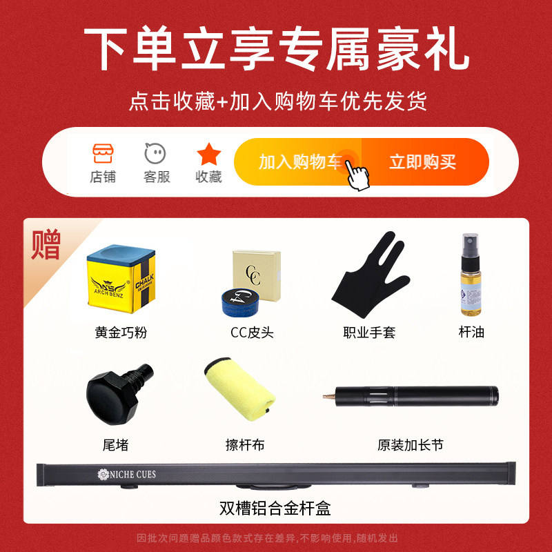 泰国Niche台球杆塔猜亚桑塔姆同款 黑八斯诺克小头杆 手工球杆中式由