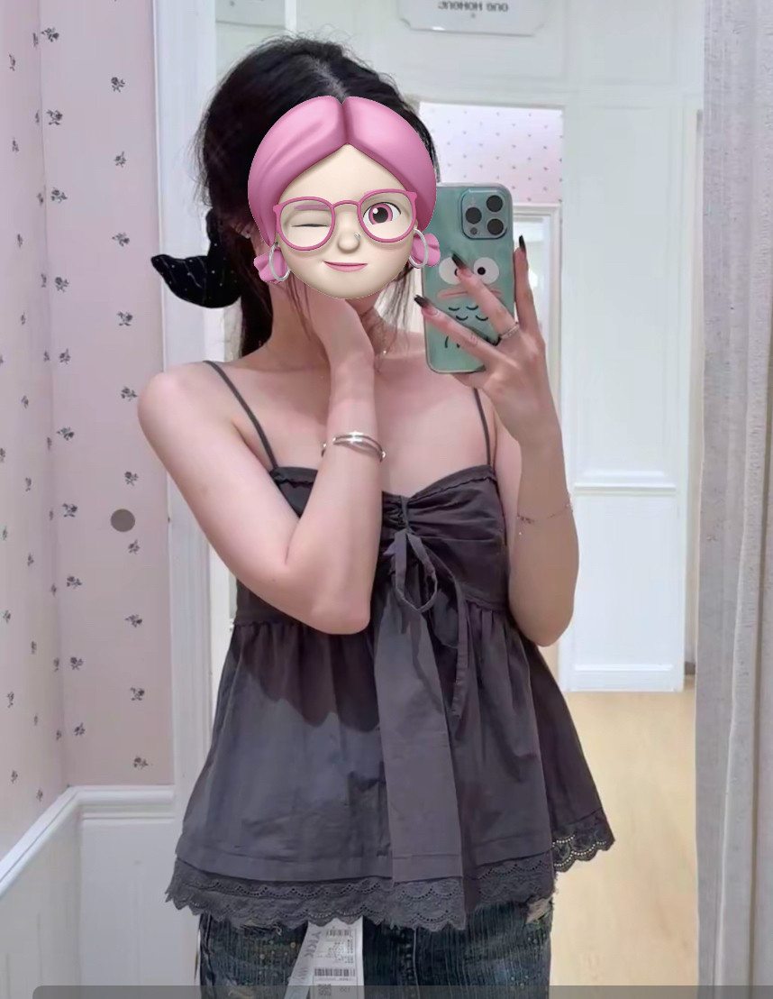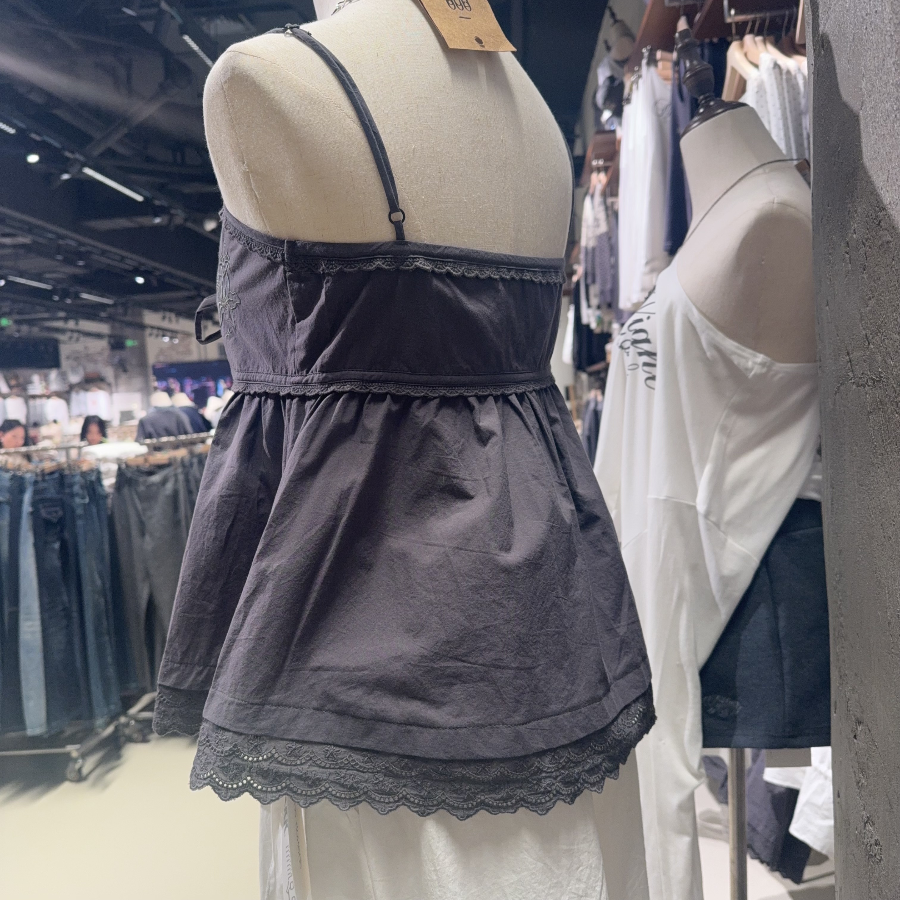 ONE 春季 新款 蝴蝶结刺绣吊带背心纯棉深灰吊带背心 MOMENT正品由