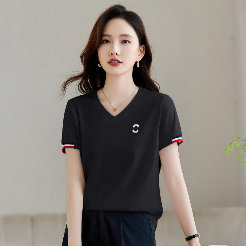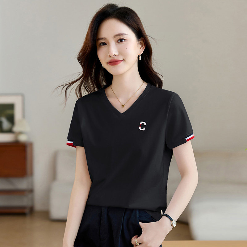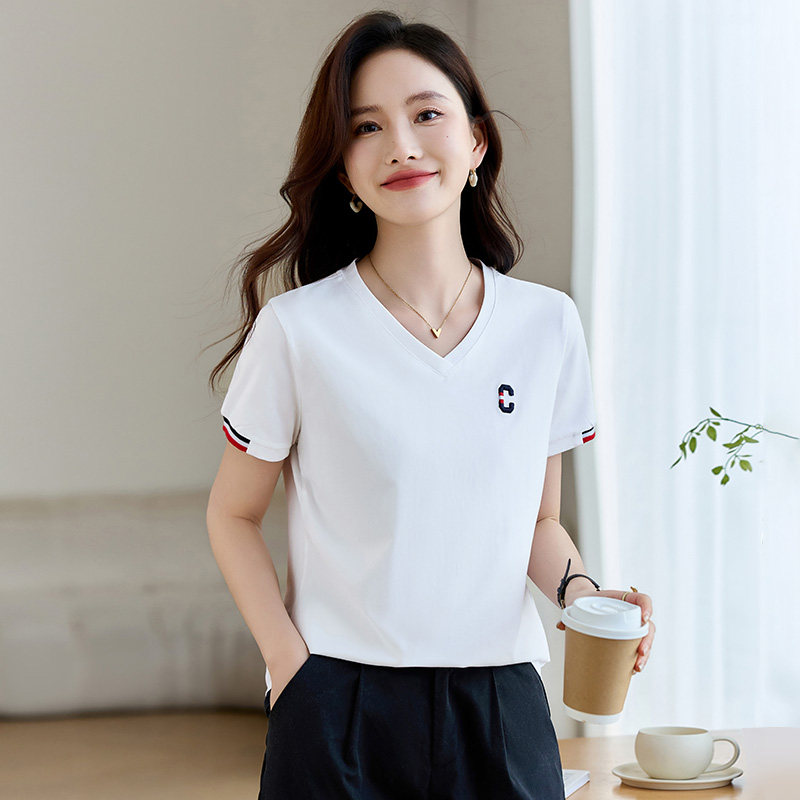 爆款 夏季 t恤女2026新款 体恤 修身 正肩上衣洋气半袖 女装 白色v领短袖