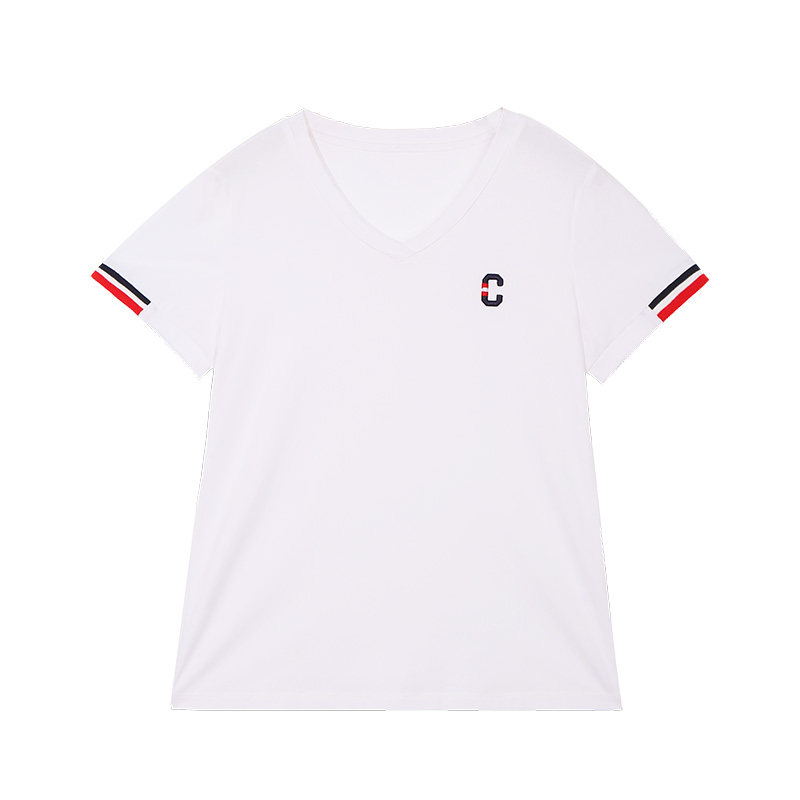 白色v领短袖