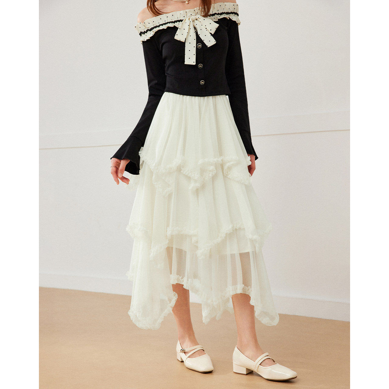 pusumede 不规则半身裙女设计感小众荷叶边蕾丝拼接裙子 仙德瑞拉