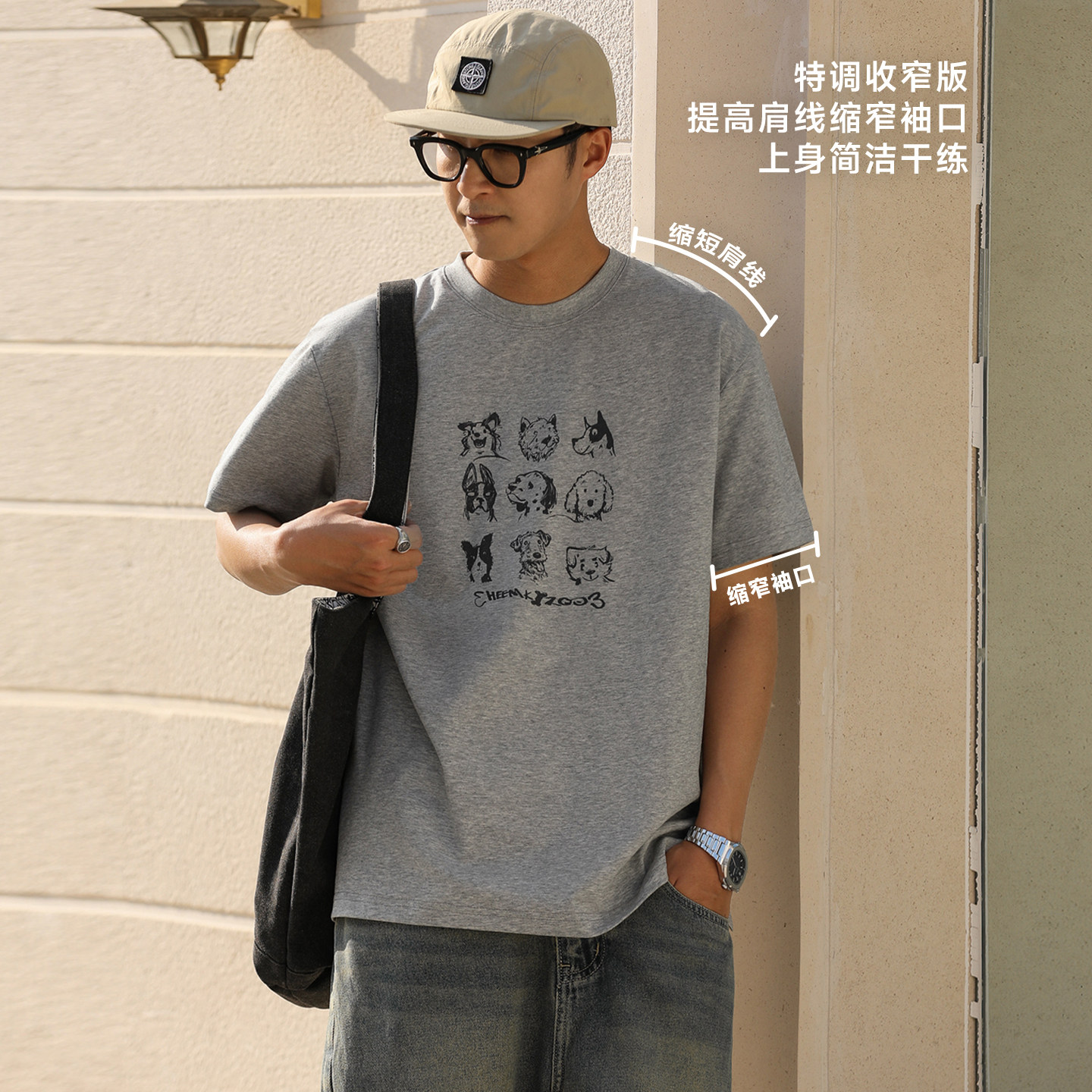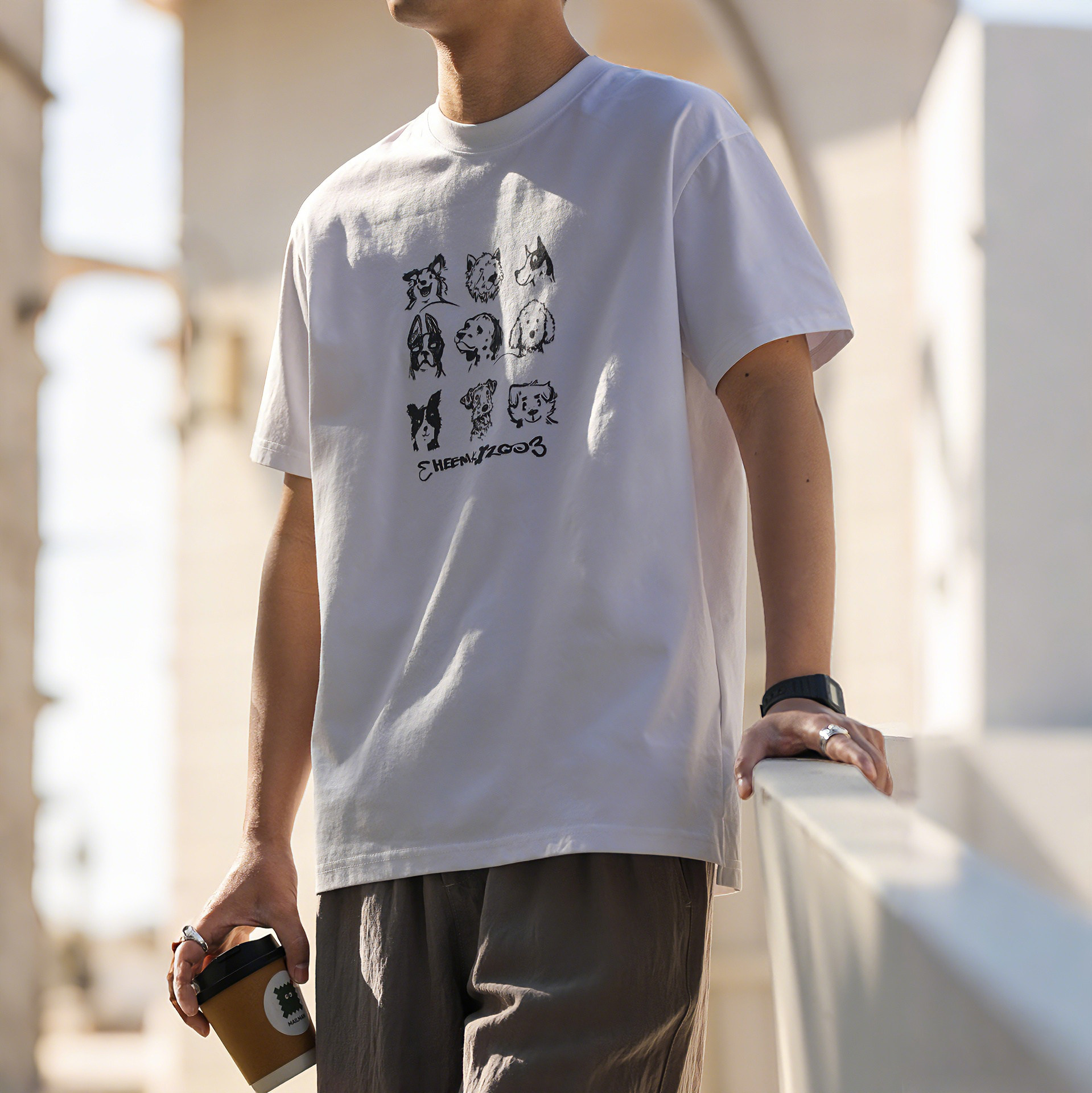 印花短袖 T恤男 夏手绘小狗数码 250G重磅嘿马七作防晒凉感速干美式
