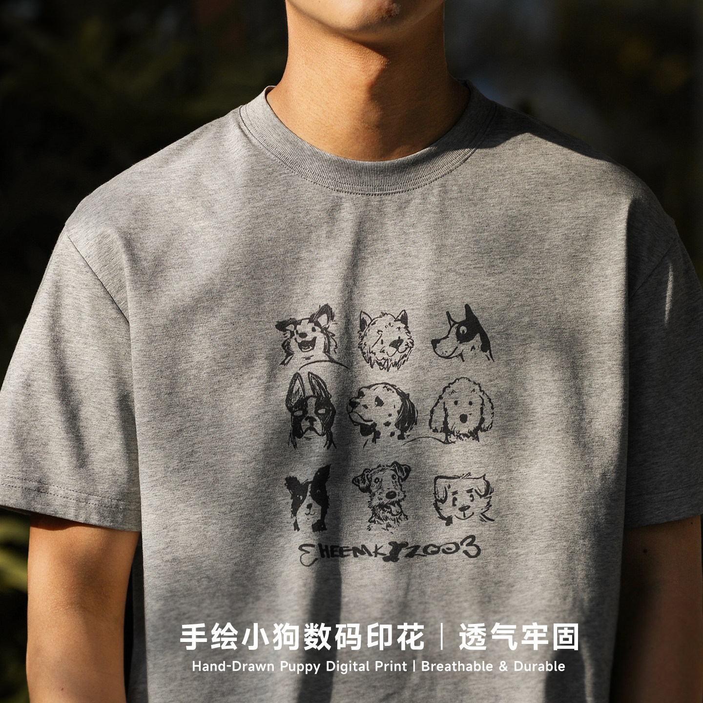 印花短袖 T恤男 夏手绘小狗数码 250G重磅嘿马七作防晒凉感速干美式由