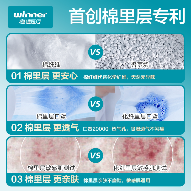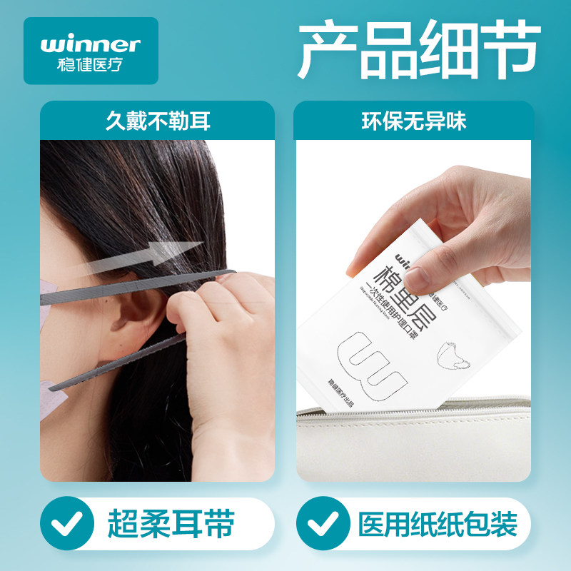 医疗官方旗舰店 稳健棉里层医用外科口罩成人儿童一次性非独立包装