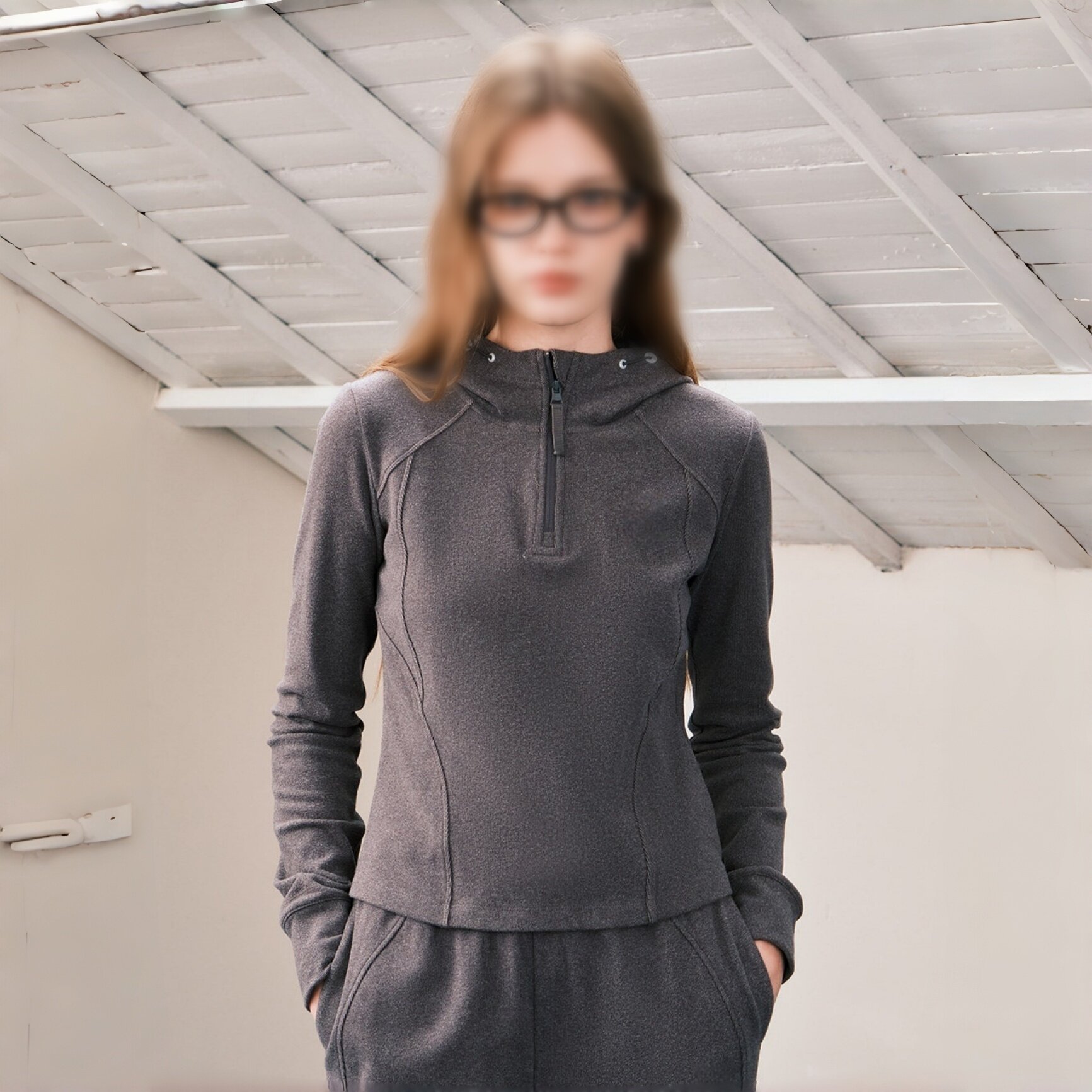 素衣彼时3796春秋女卫衣纸样休闲舒适时尚 连帽半拉链上衣样板 修身由