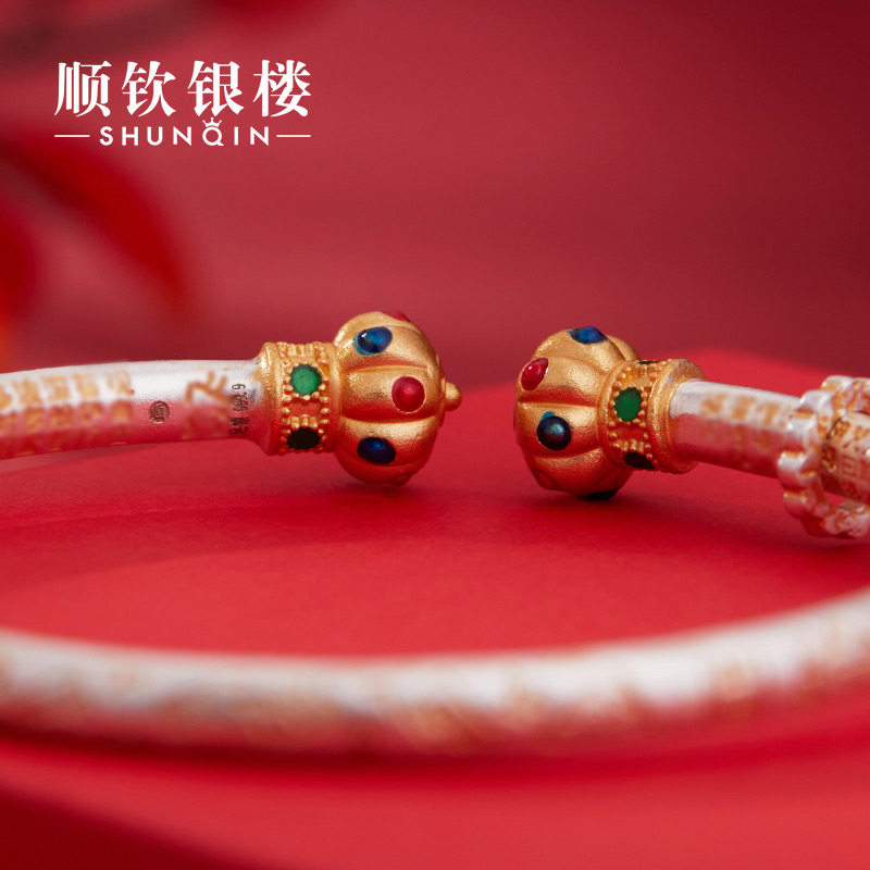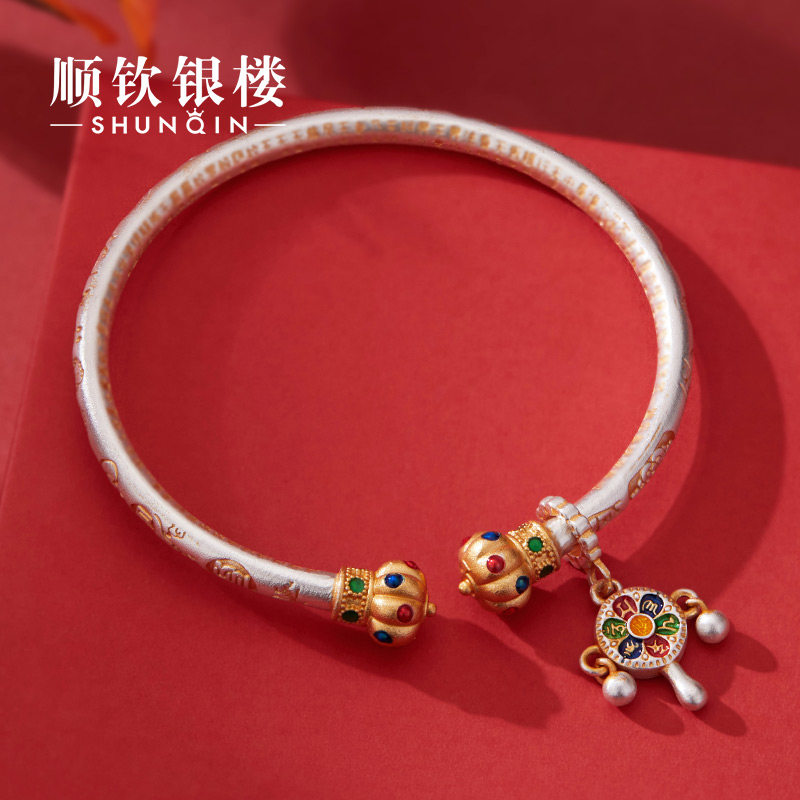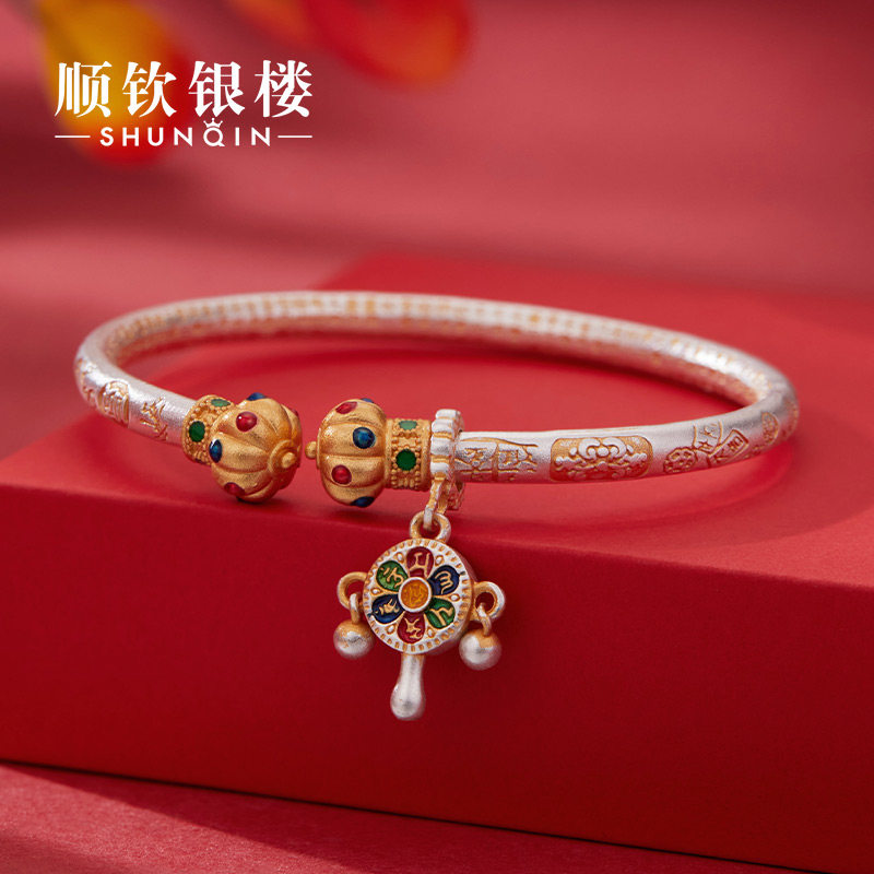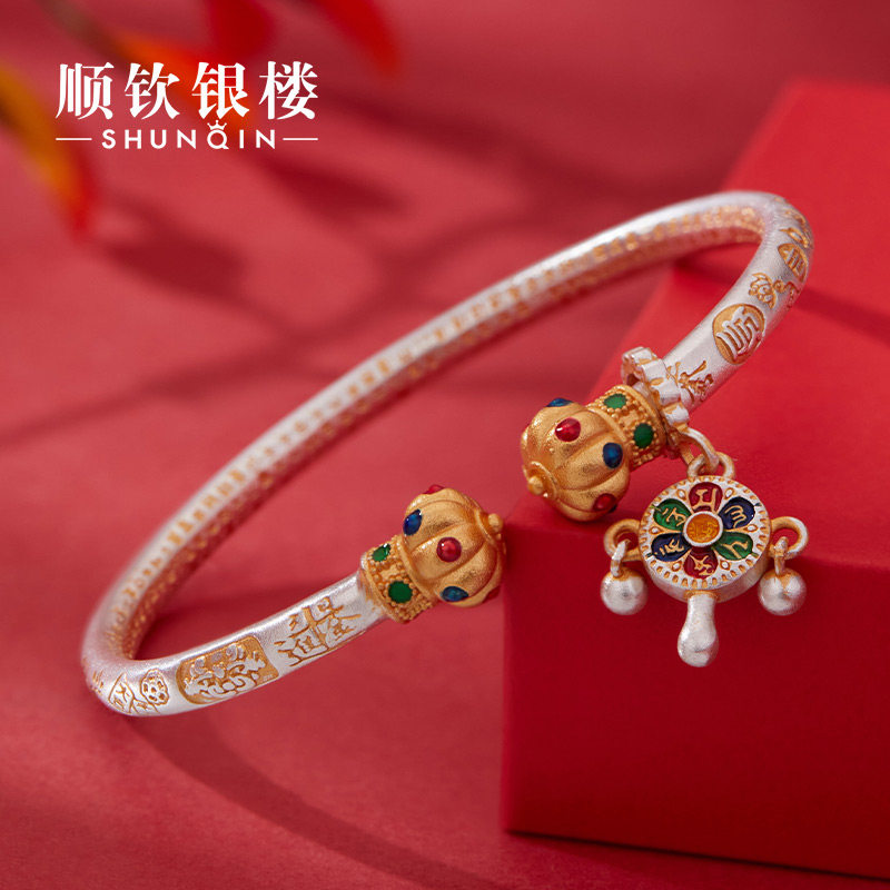为您提供商品顺钦银楼S9999足银博揽手镯女复古宫廷风轻奢开口纯银手镯送闺蜜的详细介绍,