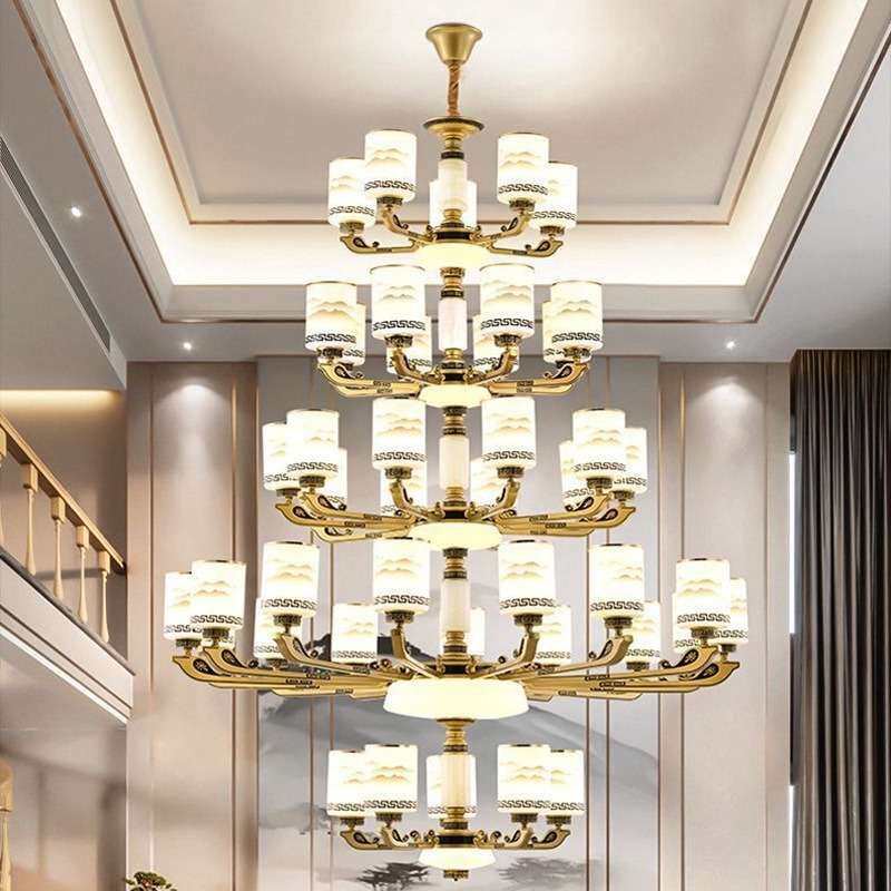 新中式 楼工程吊灯 客厅大吊灯中山灯饰中国风复古别墅酒店中空复式由