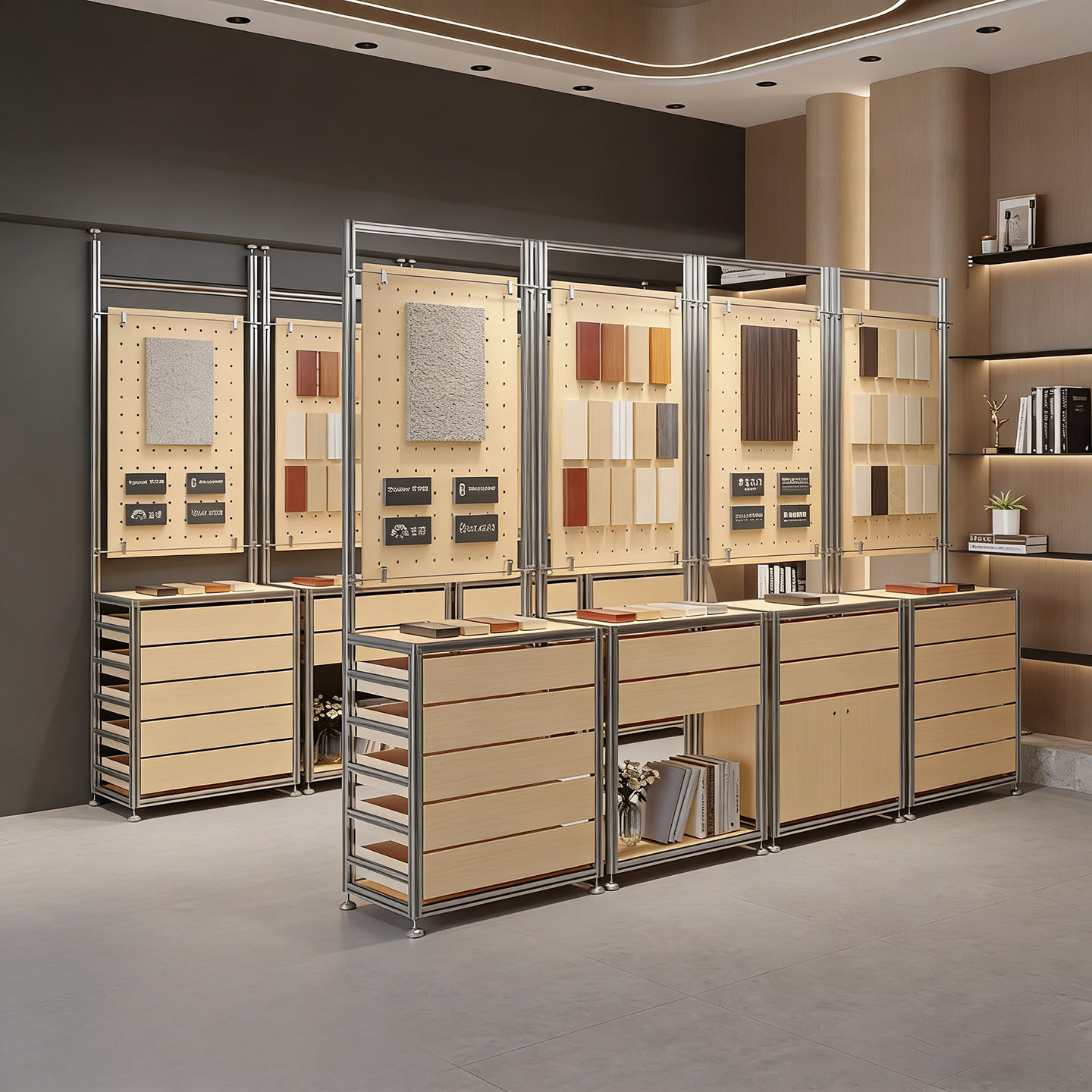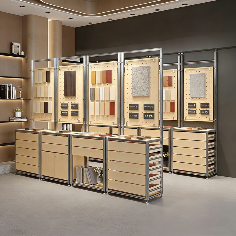 全屏3层定制陈列柜展示柜货架 现代桦木铝合金展示柜商场落地式由