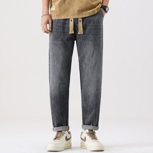 抽绳裤 莱赛尔天丝胖子牛仔裤 子 男款 锥形男裤 男夏松紧直筒大码 男士