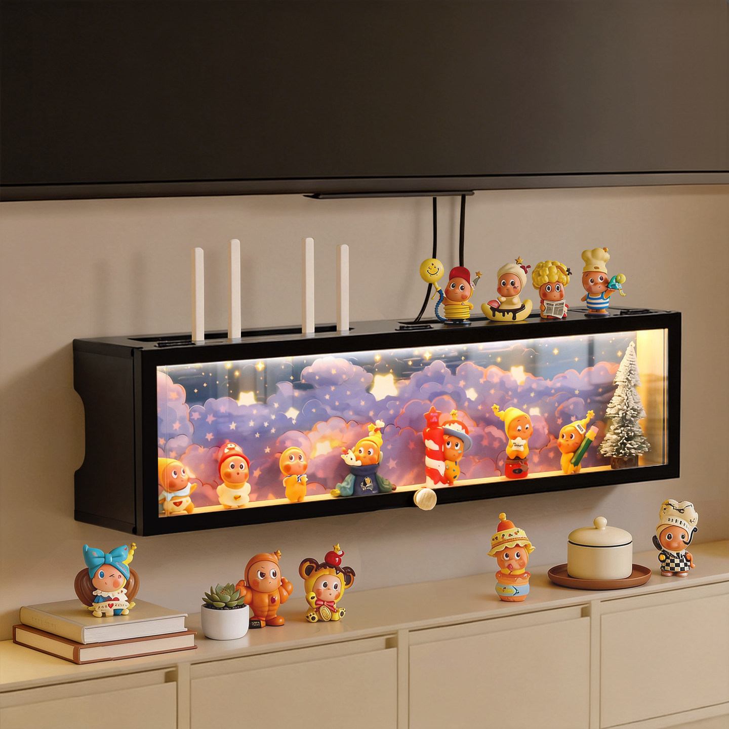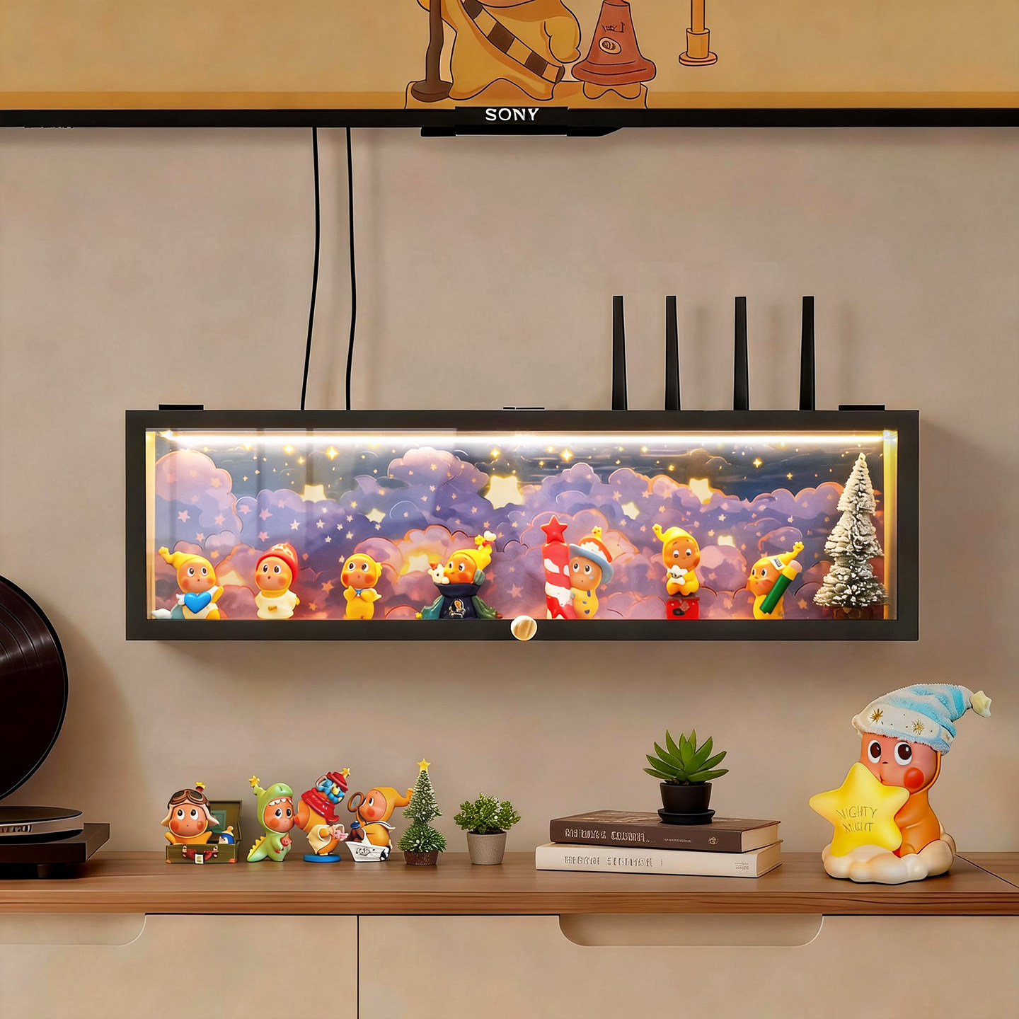 饰盒 手办收纳盒带led灯星星人盲盒置物架可放置路由器wifi光猫装