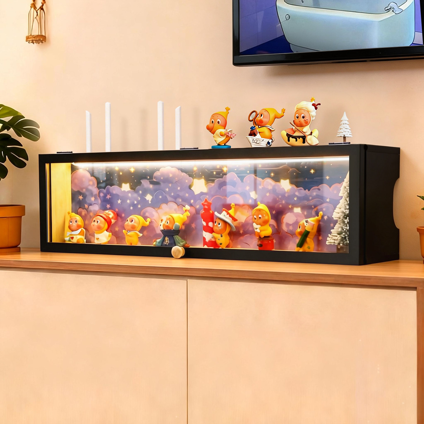 饰盒 手办收纳盒带led灯星星人盲盒置物架可放置路由器wifi光猫装由