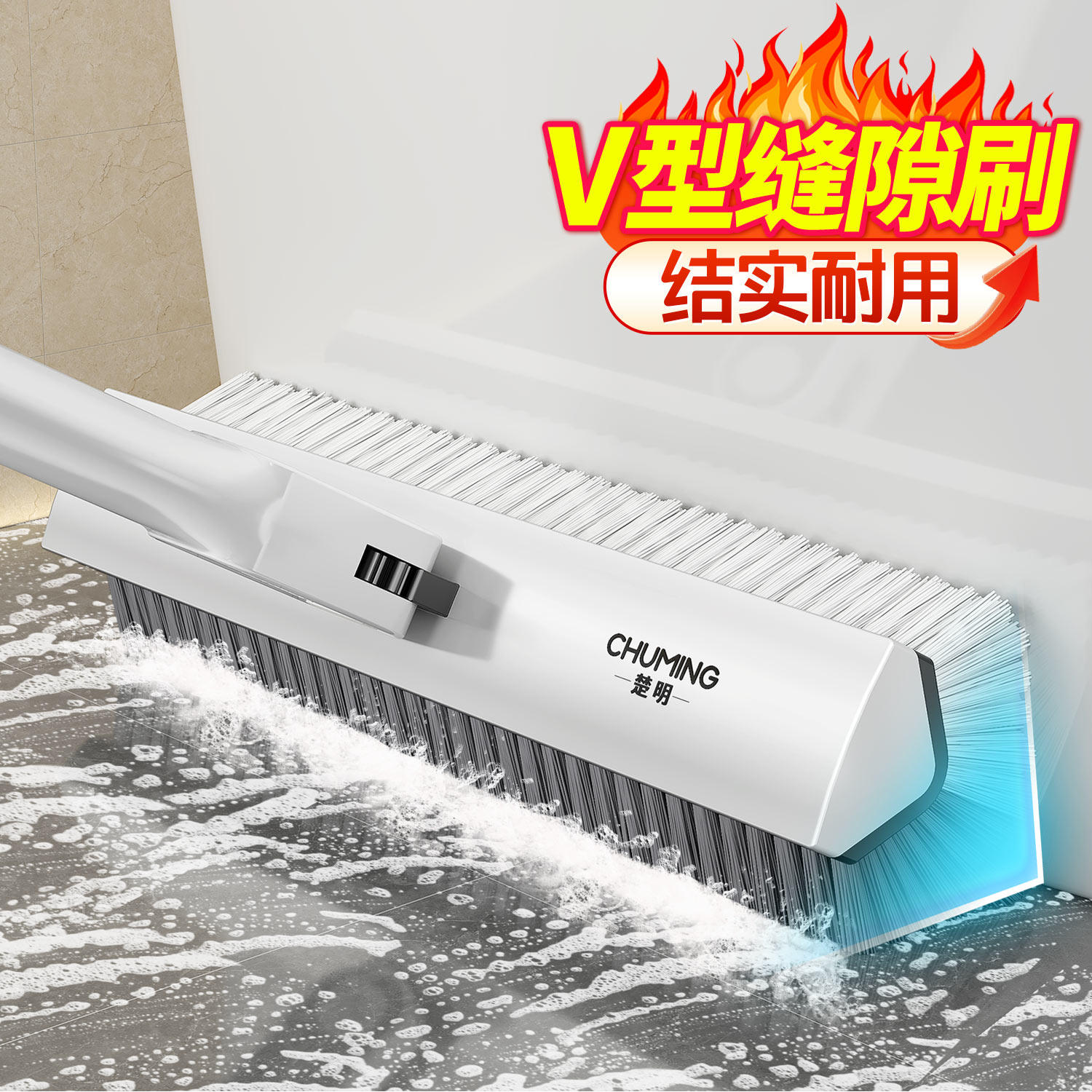 卫生间专用地刷浴室地板刷厕所刷地无死角长柄硬毛刷地缝清洁刷子由