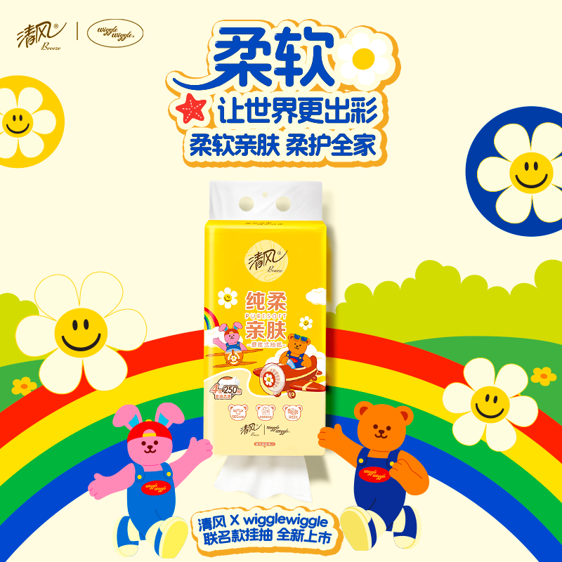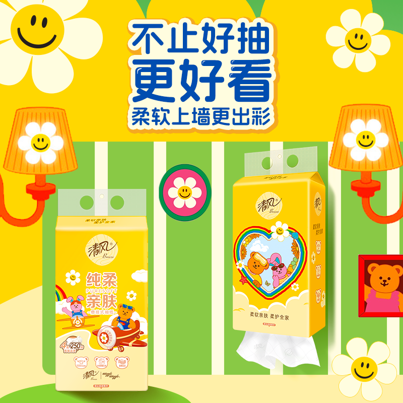 原木丝飘抽纸 加厚丝飘抽纸 清风原木抽纸