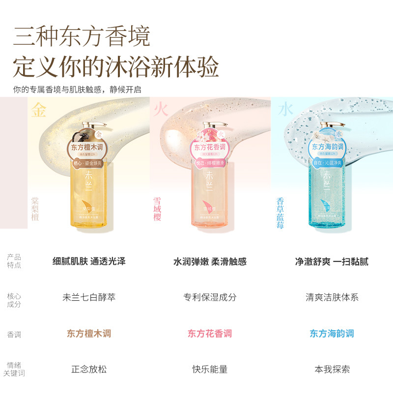 为您提供商品紧致舒缓敏感肌可用学生男女 未兰精油香氛沐浴露300g全身清洁保湿的详细介绍,