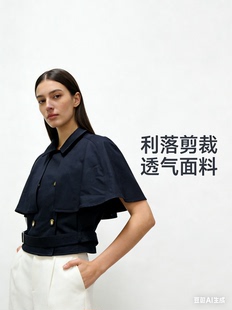 风衣外套女2026春新款 双排扣小个子高级感外套 卡其色短款 范洛经典