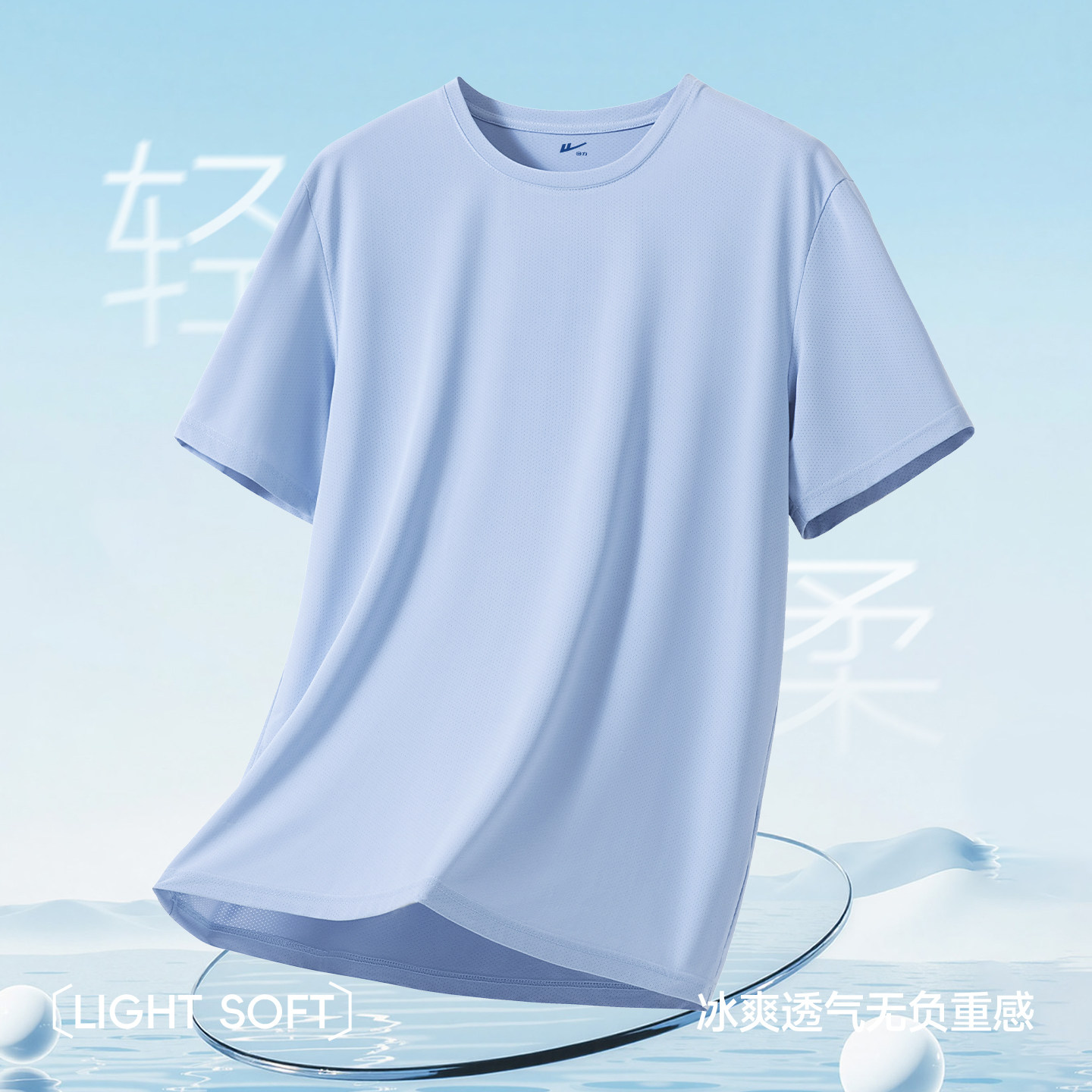 冰丝户外跑步T恤透气上衣男士 健身运动服 宽松短袖 特步速干T男夏季