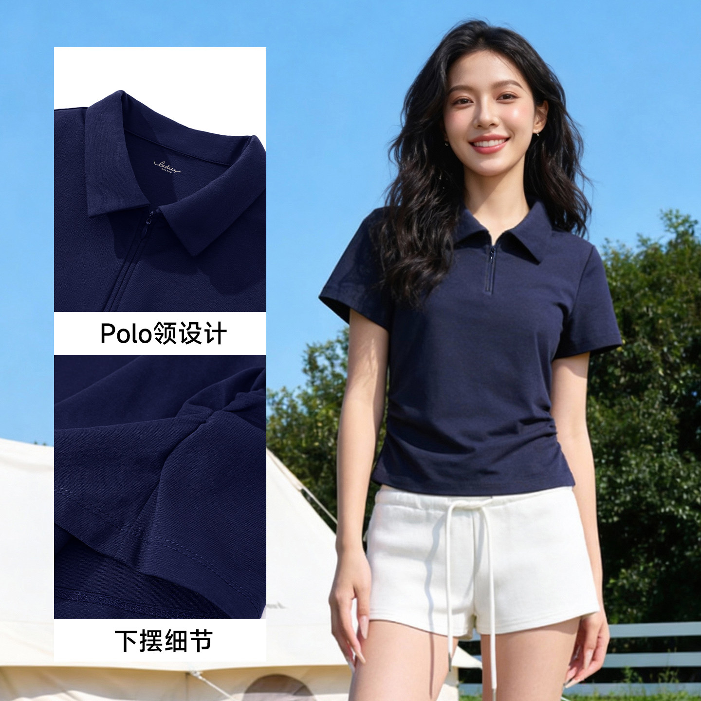 班尼路S&K系列藏青色POLO领短袖 收腰显瘦运动短上衣M T恤女夏新款由