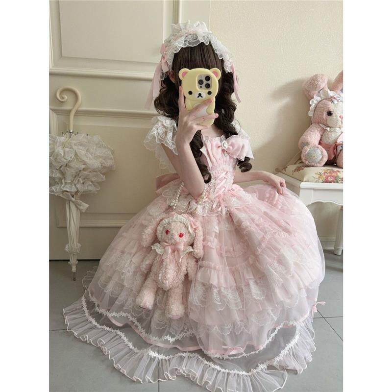 蝴蝶结洛丽塔软妹大小姐公主裙 粉色公主裙可爱lolita花嫁温柔洋装