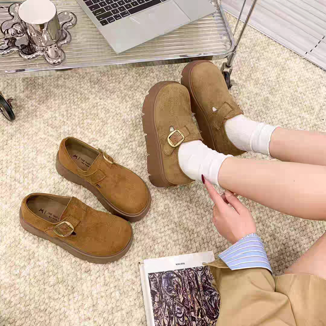 丁字鞋 全包日系情侣牛皮低帮复古平底勃肯London系列 软木包头女鞋