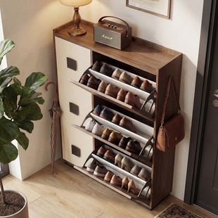 柜超薄入户门后家用极窄玄关柜一体靠墙收纳柜储物柜 中古风翻斗鞋