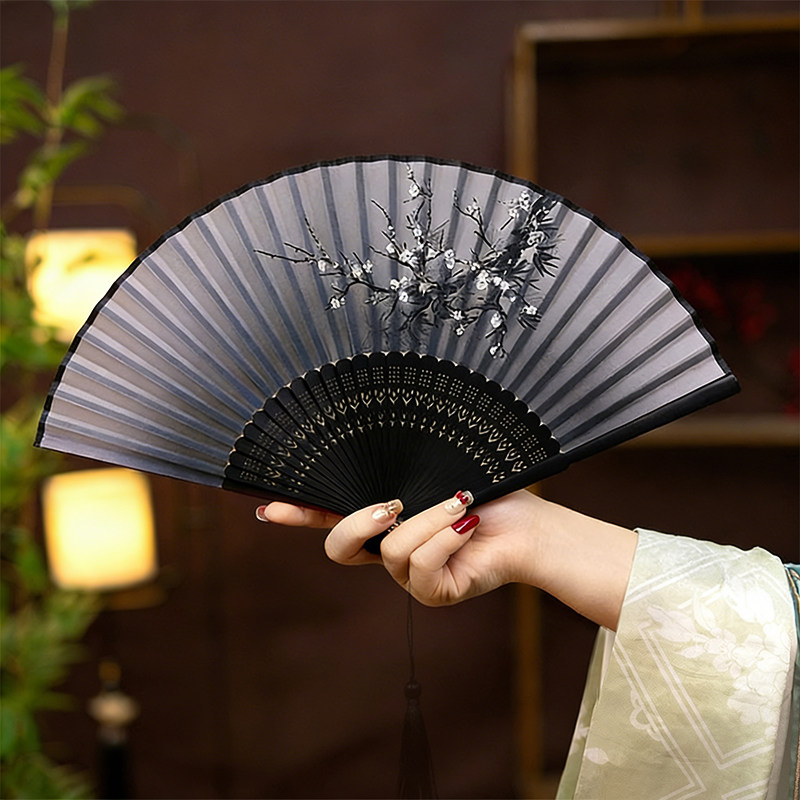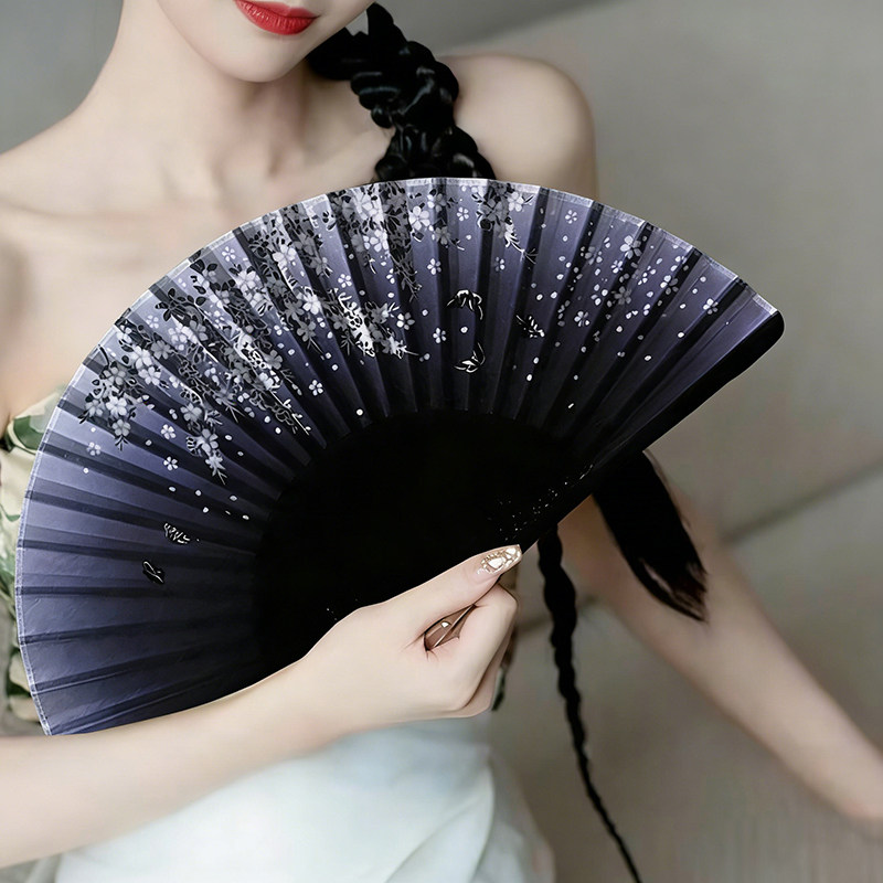 新中式 中国风跳舞 扇子古风折扇黑色旗袍汉服随身携带搭配马面裙