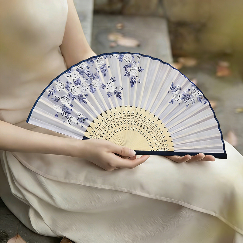 新中式 女扇便携折叠扇中国风汉服旗袍扇古典竹扇 折扇古风扇子夏季