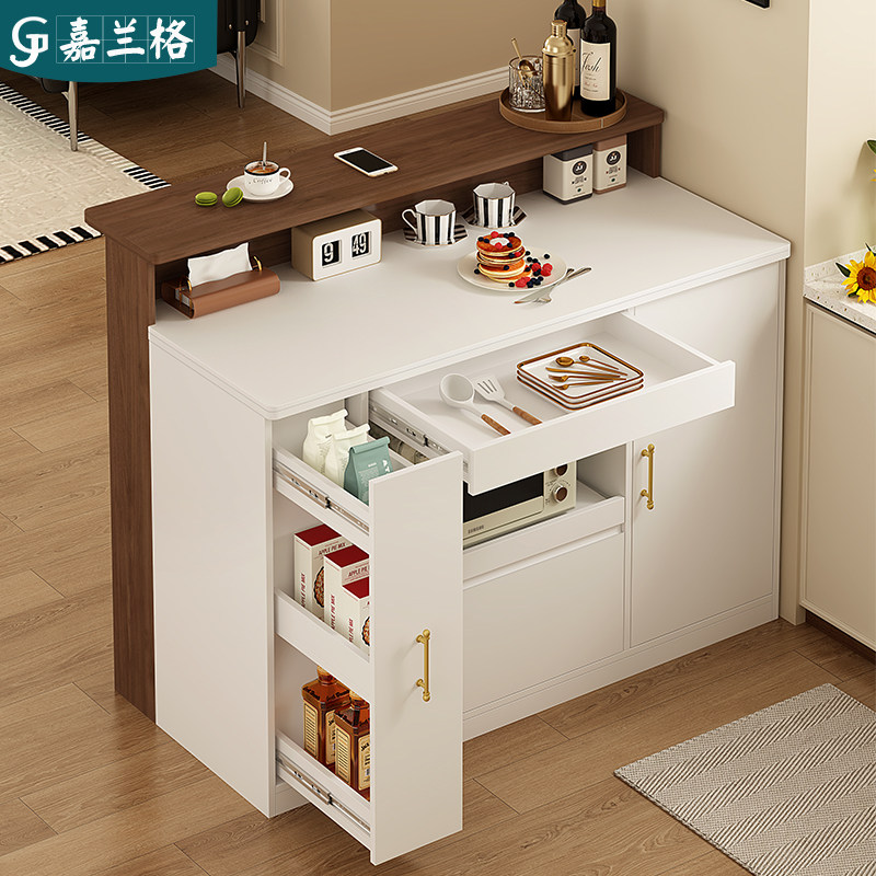 厨房岩板岛台柜单独客厅隔断柜子9G444 实木吧台餐边柜一体开放式
