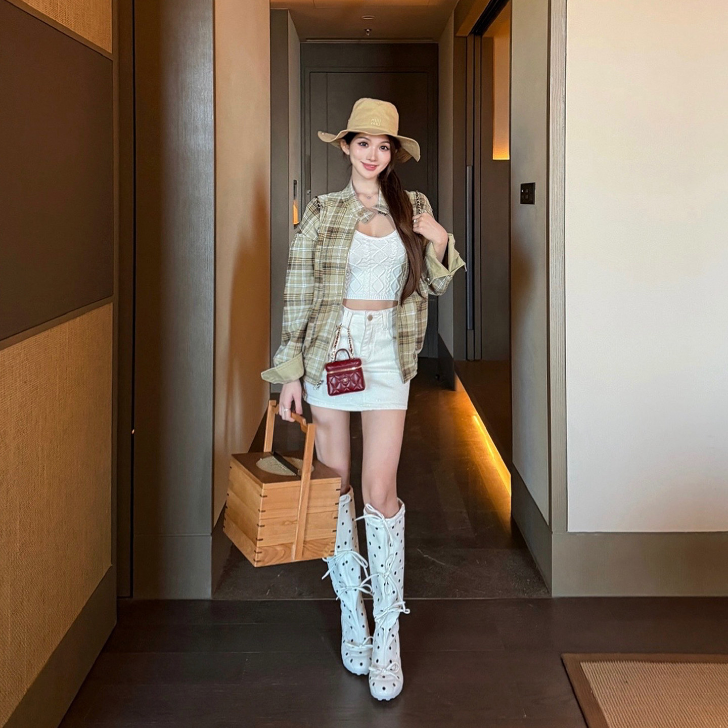 PickRui睿哥 高腰包臀裙A字裙百搭 白色闪钻牛仔短裙半身裙女新款由
