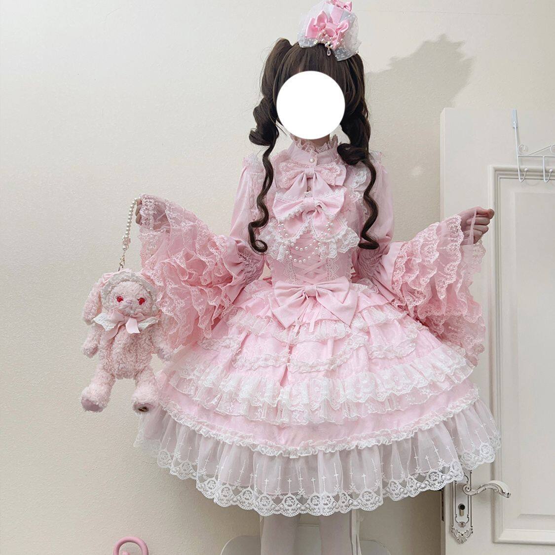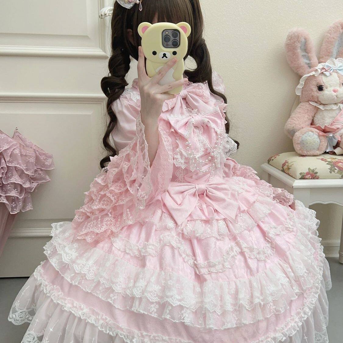 樱慧落樱风铃层层蛋糕公主裙lolita粉色甜美小个子洛丽塔连衣裙