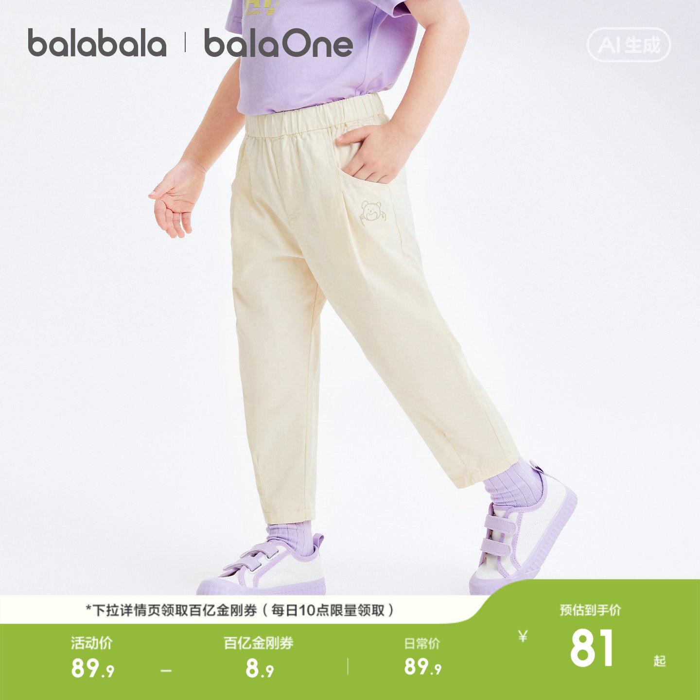 为您提供商品2026新款 巴拉巴拉童装 儿童长裤 男童女童夏装 开心熊绣花宽松气球裤的详细介绍,
