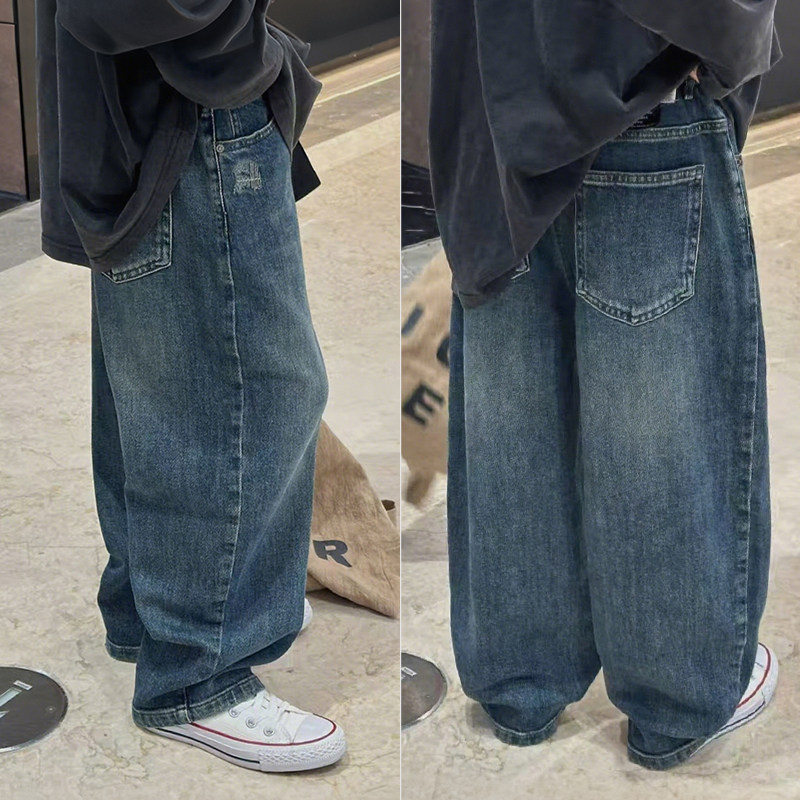儿童直筒弯刀裤 清仓合集 子 休闲牛仔裤 新款 大E小e爱木橦童装 春季