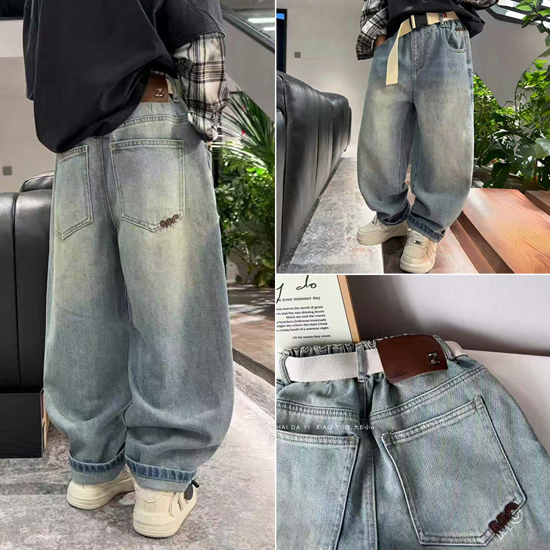 儿童直筒弯刀裤 清仓合集 子 休闲牛仔裤 新款 大E小e爱木橦童装 春季由