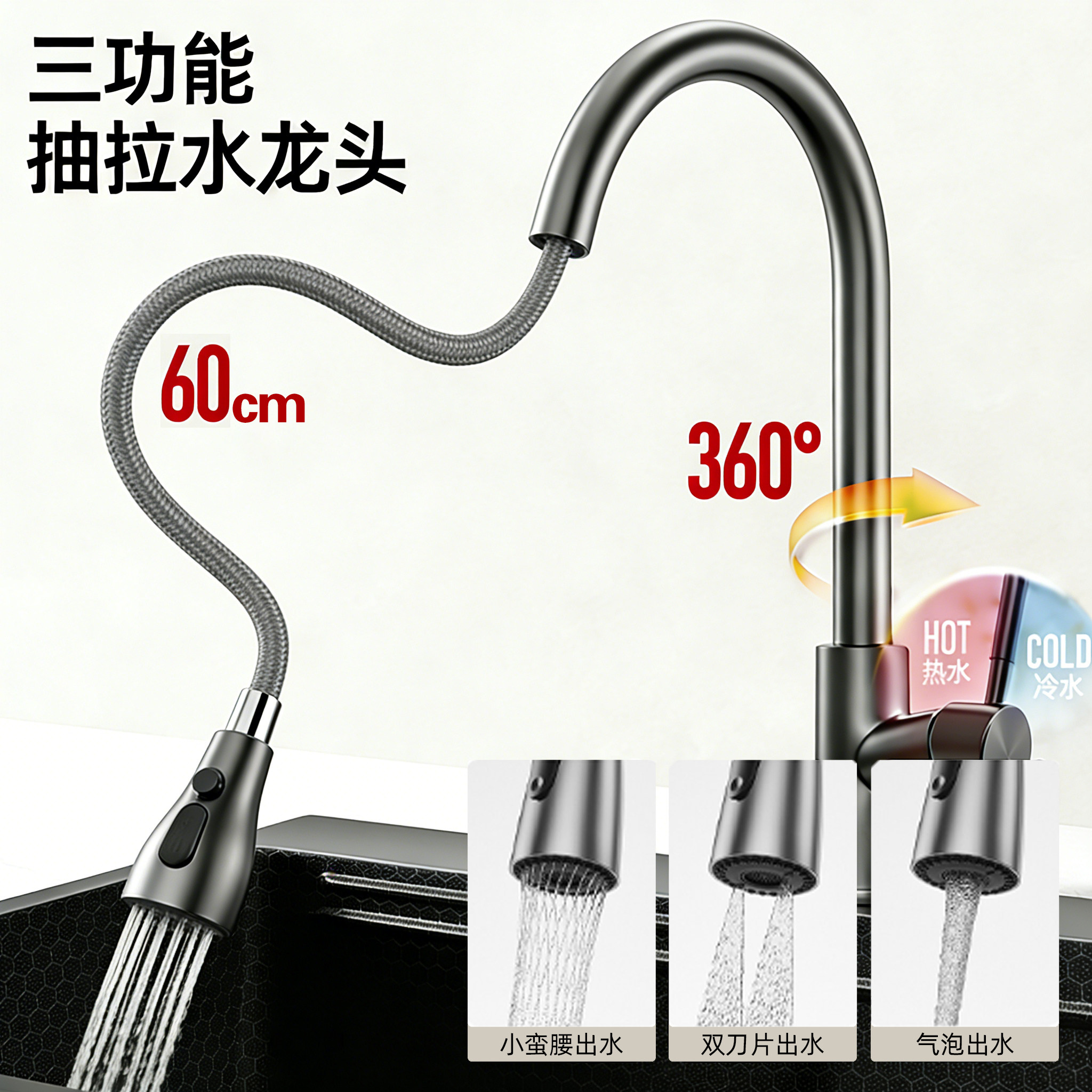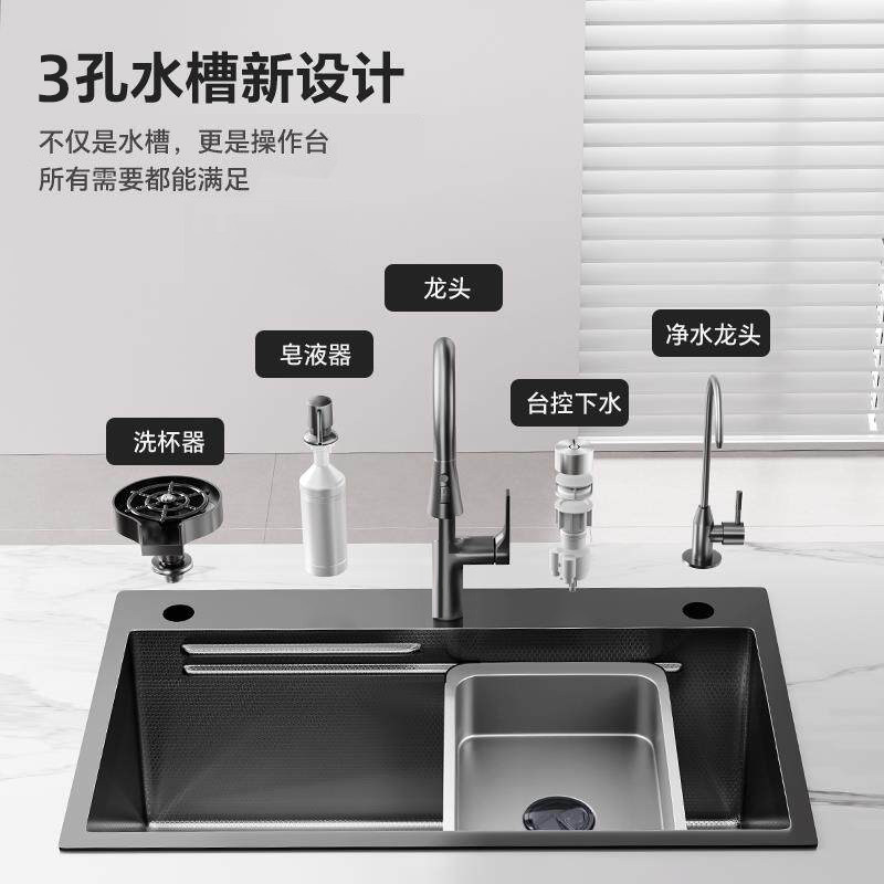 悍高厨房纳米水槽手工单槽304不锈钢灰色洗菜盆洗碗盆大单盆套餐