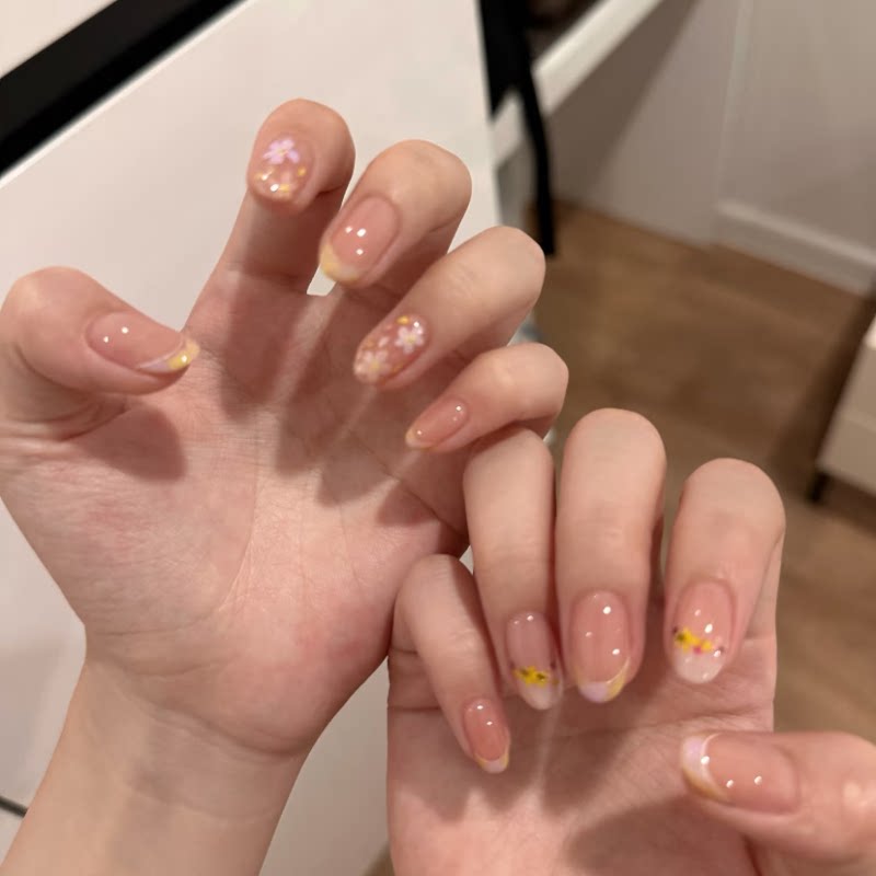 为您提供商品小黄花穿戴甲手工中长海莉简约美甲高级绝美杏仁指甲 春日故事的详细介绍,