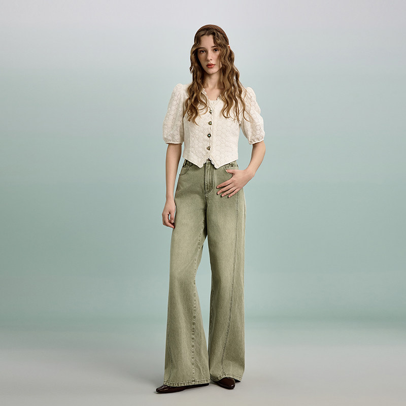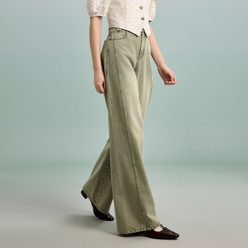 PIT高腰直筒水洗100%棉牛仔裤 新款 阔腿百搭显瘦裤 子 女2026春季由