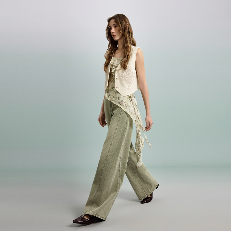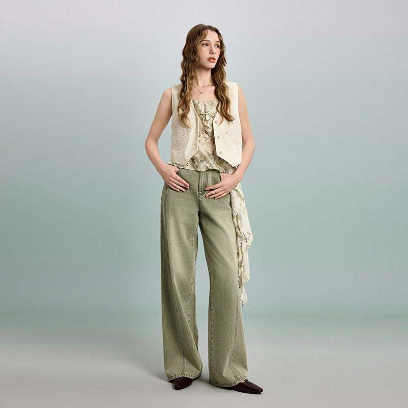 eihey诶嘿低腰修身 长裤 阔腿裤 女 直筒休闲宽松做旧磨白水洗牛仔裤
