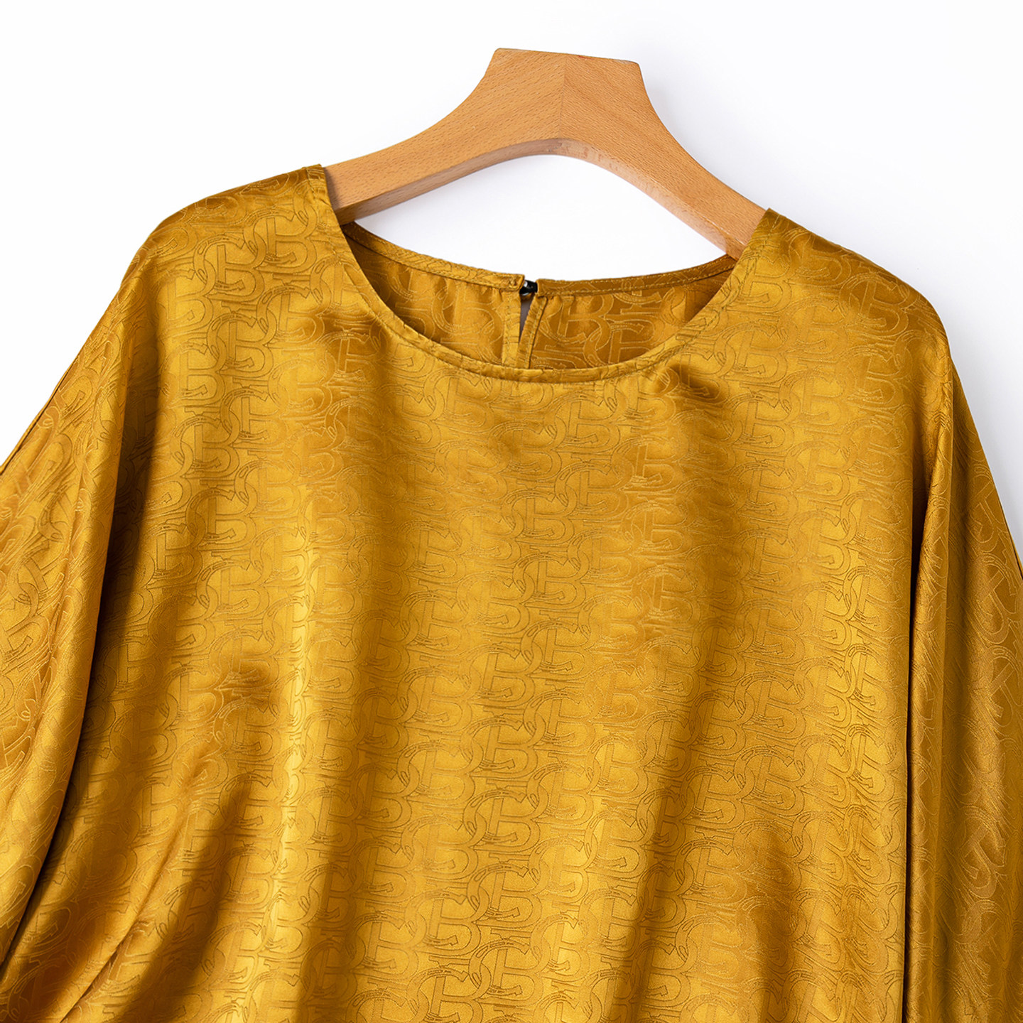 衬衫 T恤宽松女 精美光泽20姆米真丝提花缎蝙蝠袖 桑蚕丝贵气金色