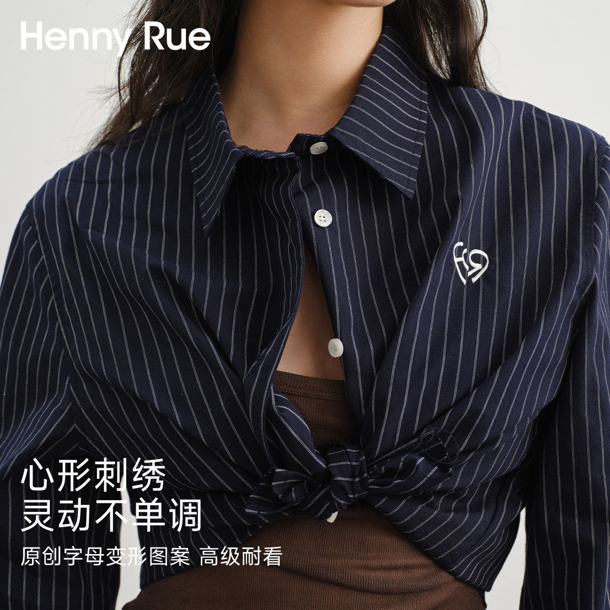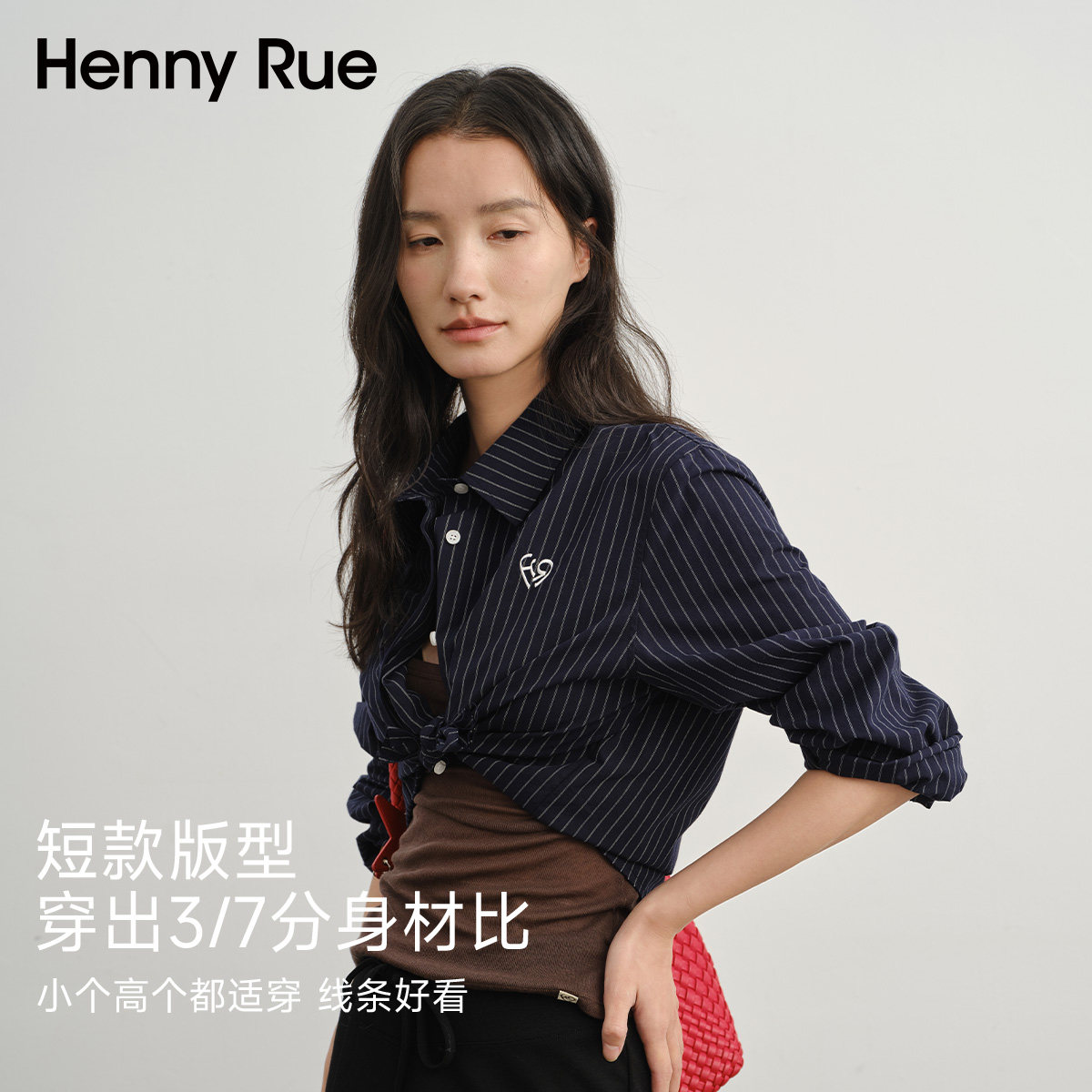百搭智性风短款 HENNY RUE亨尼露条纹全棉刺绣衬衫 女长袖 女士衬衫