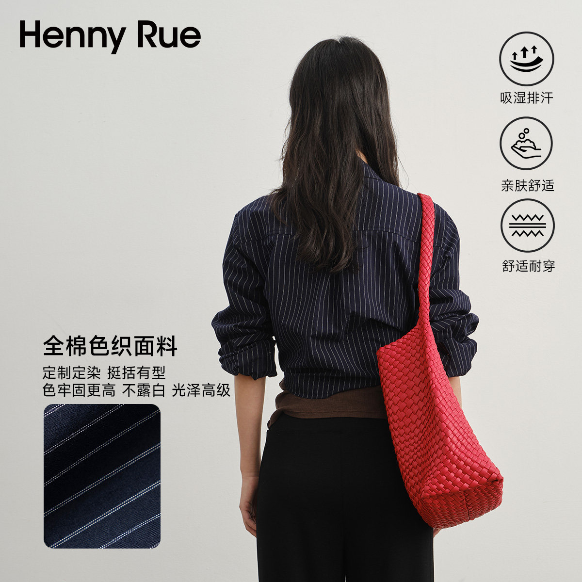 百搭智性风短款 HENNY RUE亨尼露条纹全棉刺绣衬衫 女长袖 女士衬衫由