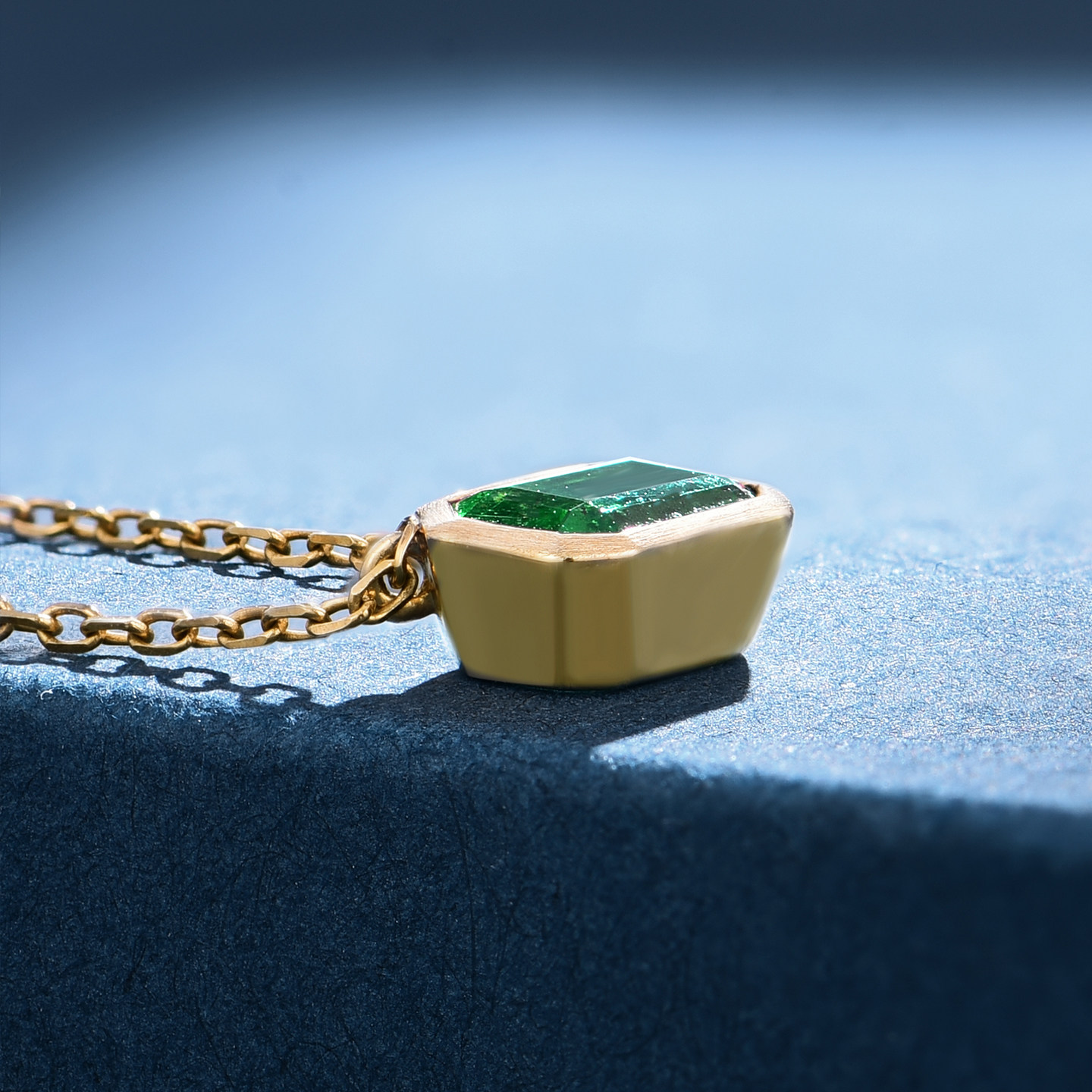 天然彩宝石祖母绿吊坠18K金项链首饰定制配K金链子 私意珠宝