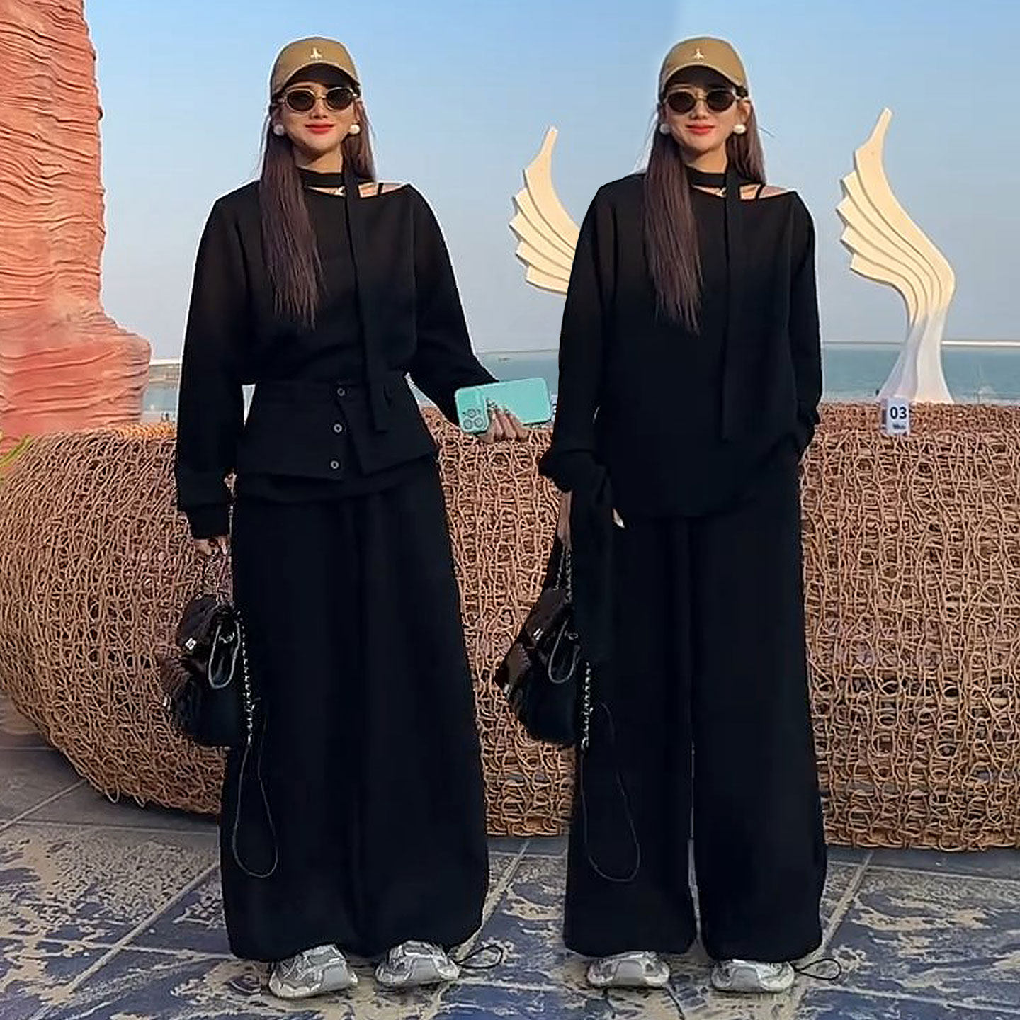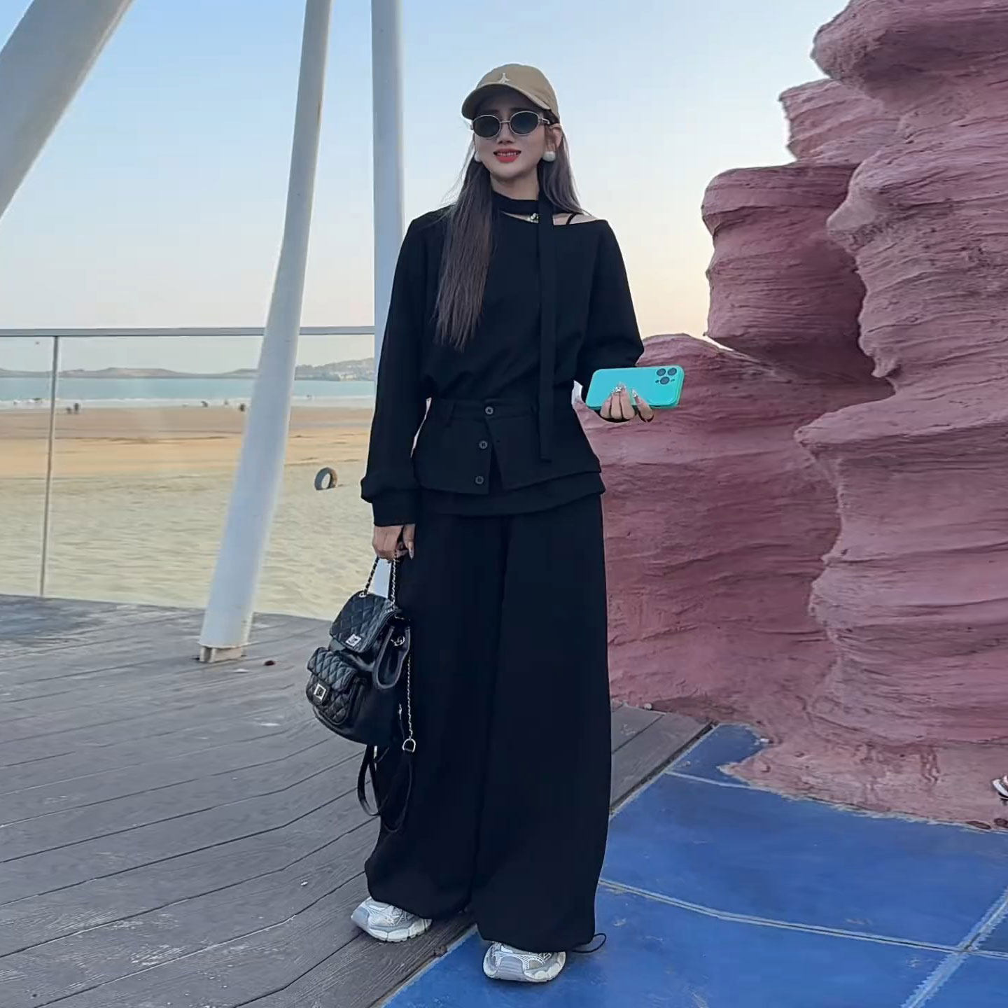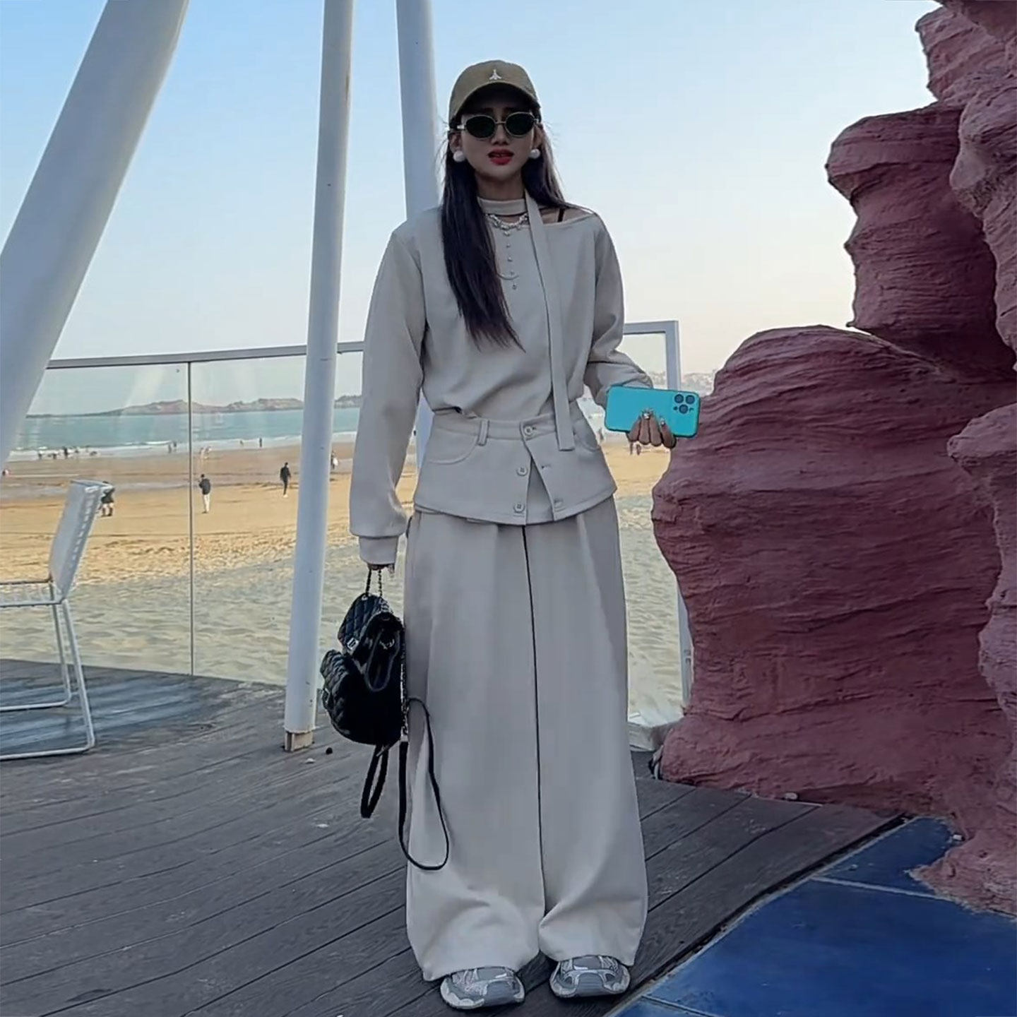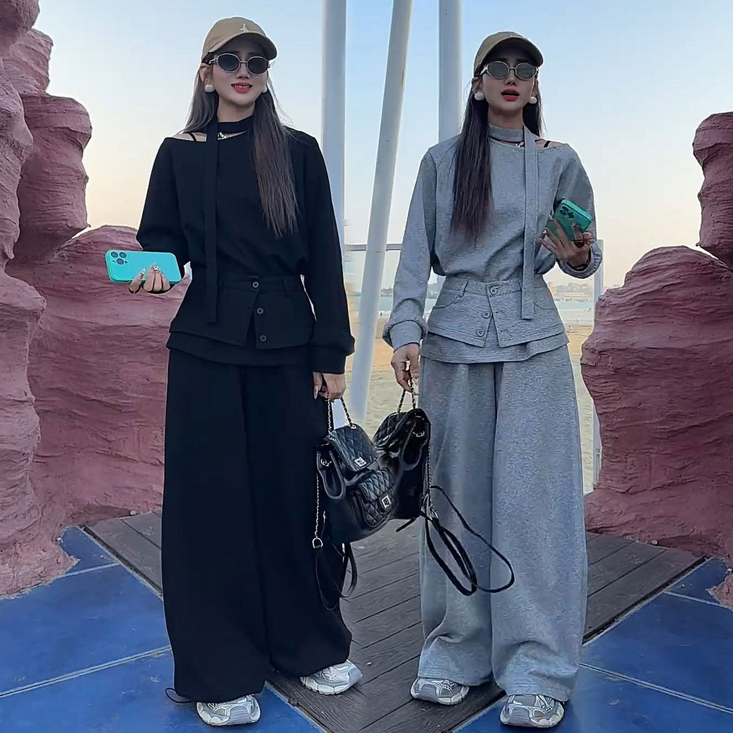 女运动休闲通勤慵懒时尚 2026春款 套装 两件套长袖 百搭阔腿裤