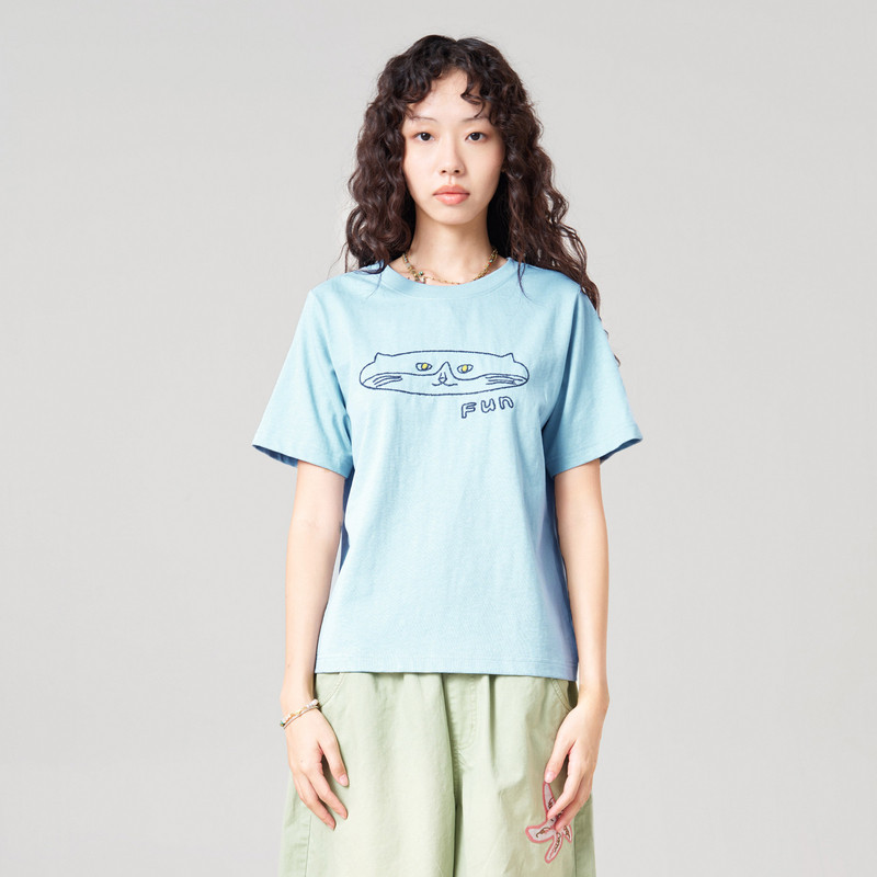 为您提供商品.FUN系列圆领正肩大脸猫绣花短款 T恤女 新款 MOVEUP幻走2026夏季的详细介绍,
