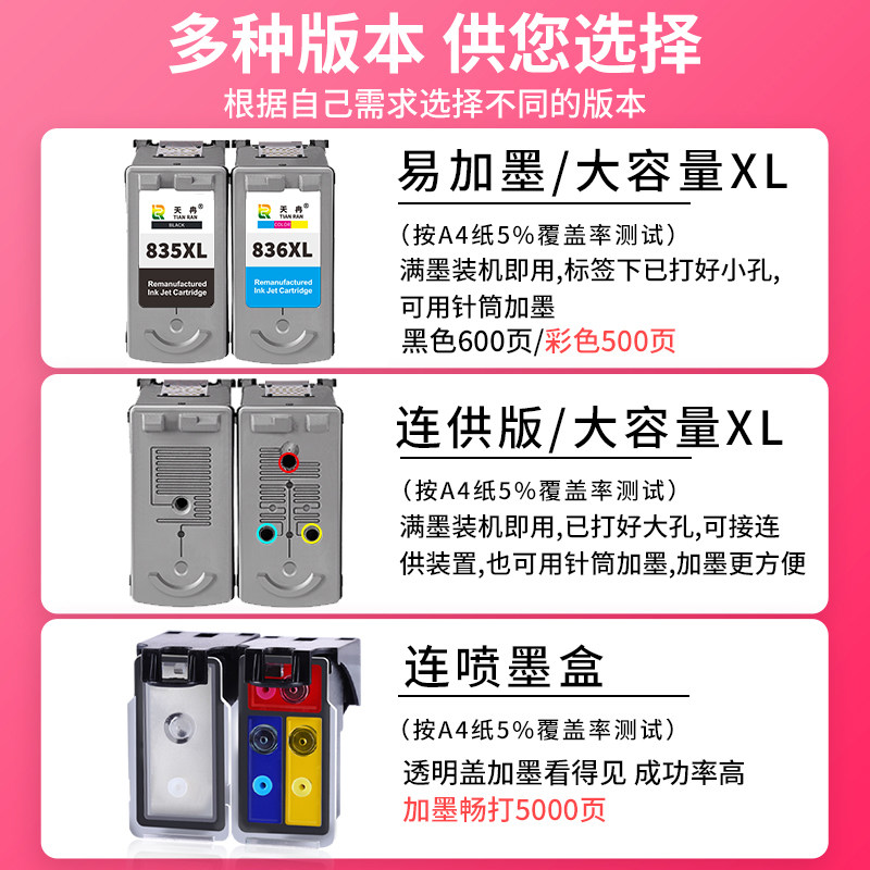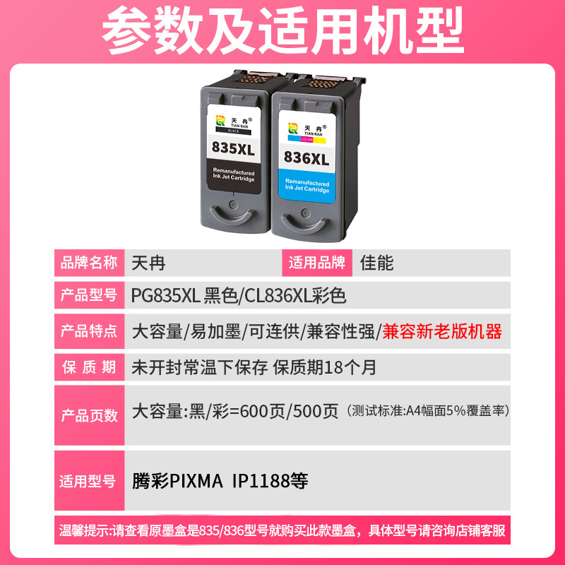⭐小红书推荐⭐天冉兼容佳能PG canon 易加墨 可连供 黑彩IP1188打印机墨盒 可加墨 836彩色 835XL 835墨盒 改装,所属墨盒分类,由淘宝网挑选推荐!小红书抖音网红同款!哪里有卖天冉兼容佳能PG canon 易加墨 可连供 黑彩IP1188打印机墨盒 可加墨 836彩色 835XL 835墨盒 改装和多少钱质量怎么样✅。
